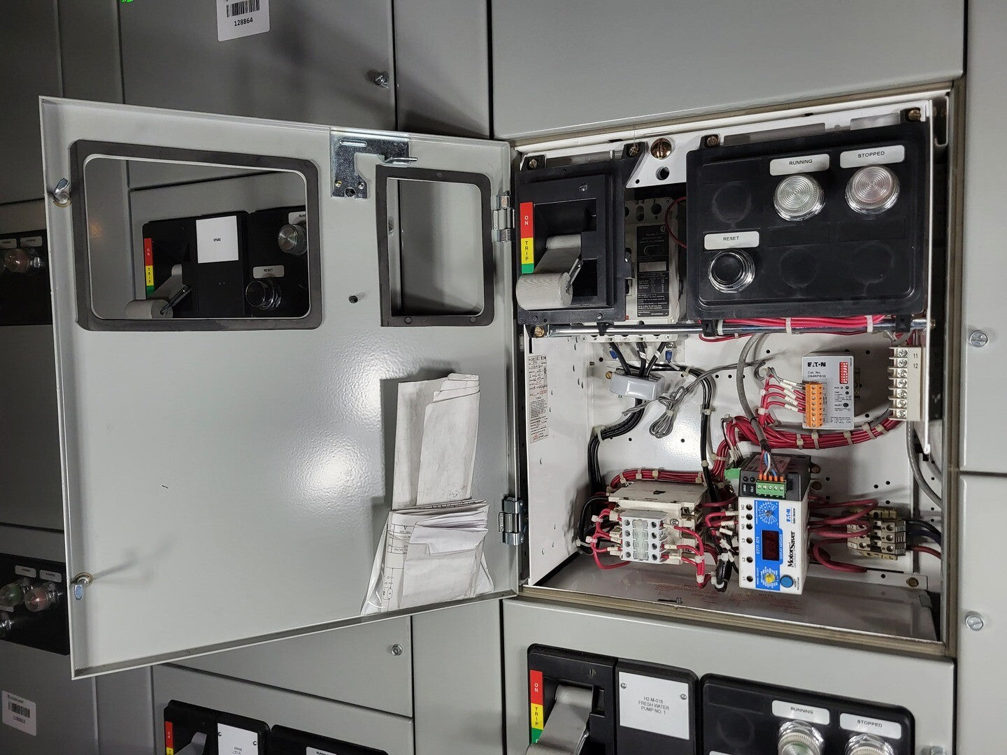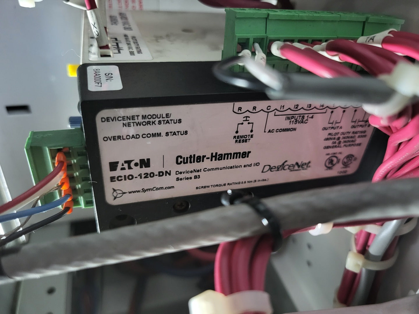 **Fits 2100 MCC Frame Circuit Breaker Maker: Eaton Model: HMCP Voltage: 600V Amps: 50 amps Poles: 3 Ground Fault Relay Maker: Eaton Model: D64RPB30 Overload relay: 24-240 Vac/dc Motor Saver Electronic Overload Relay Maker: Eaton Model: E777-575 Voltage: 450-600VAC Phase: 3 Transformer Maker: MCi Model: 5576-14-120-00 VA: 150VA Primary: 600V Secondary: 120V Devicenet Module Maker: Eaton Model: EC10-120-DN Inputs: 115VAC Contactor Maker: Eaton Model: CN15GN3 Amp: 45 Size: NEMA 2 |