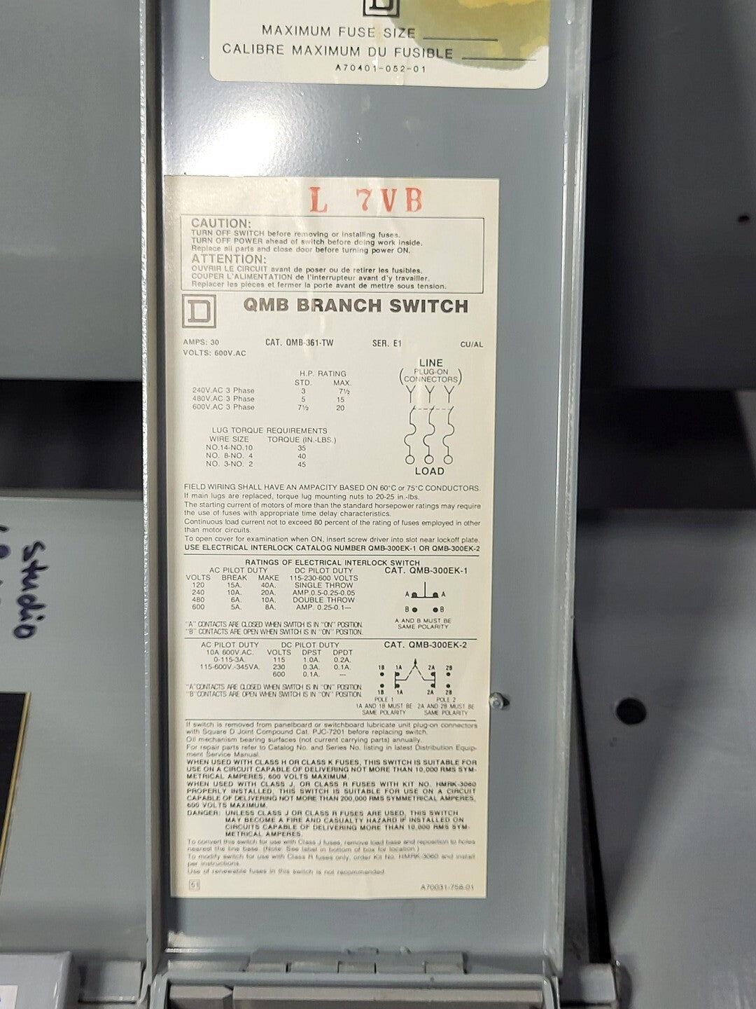 Switches: QMB316TW, 30 amps, 3 poles, 600 volts