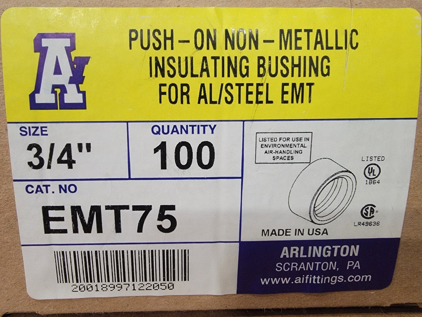 3/4" Push-on Insulating Bushing EMT75 (Box of 100)