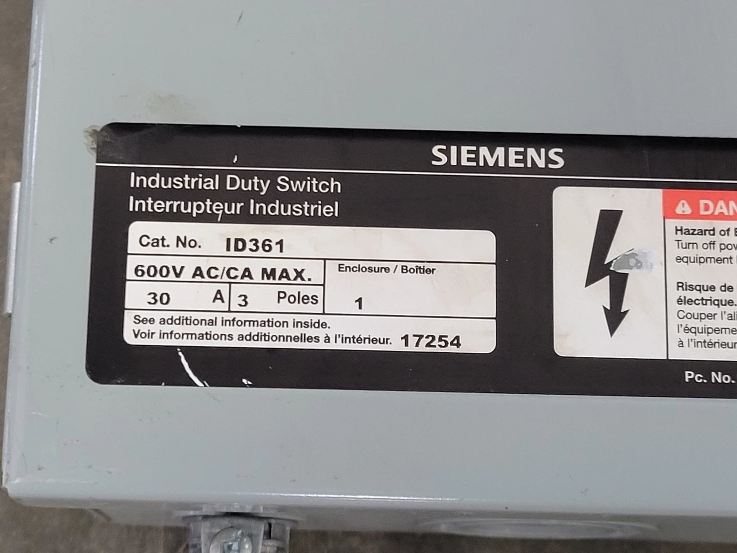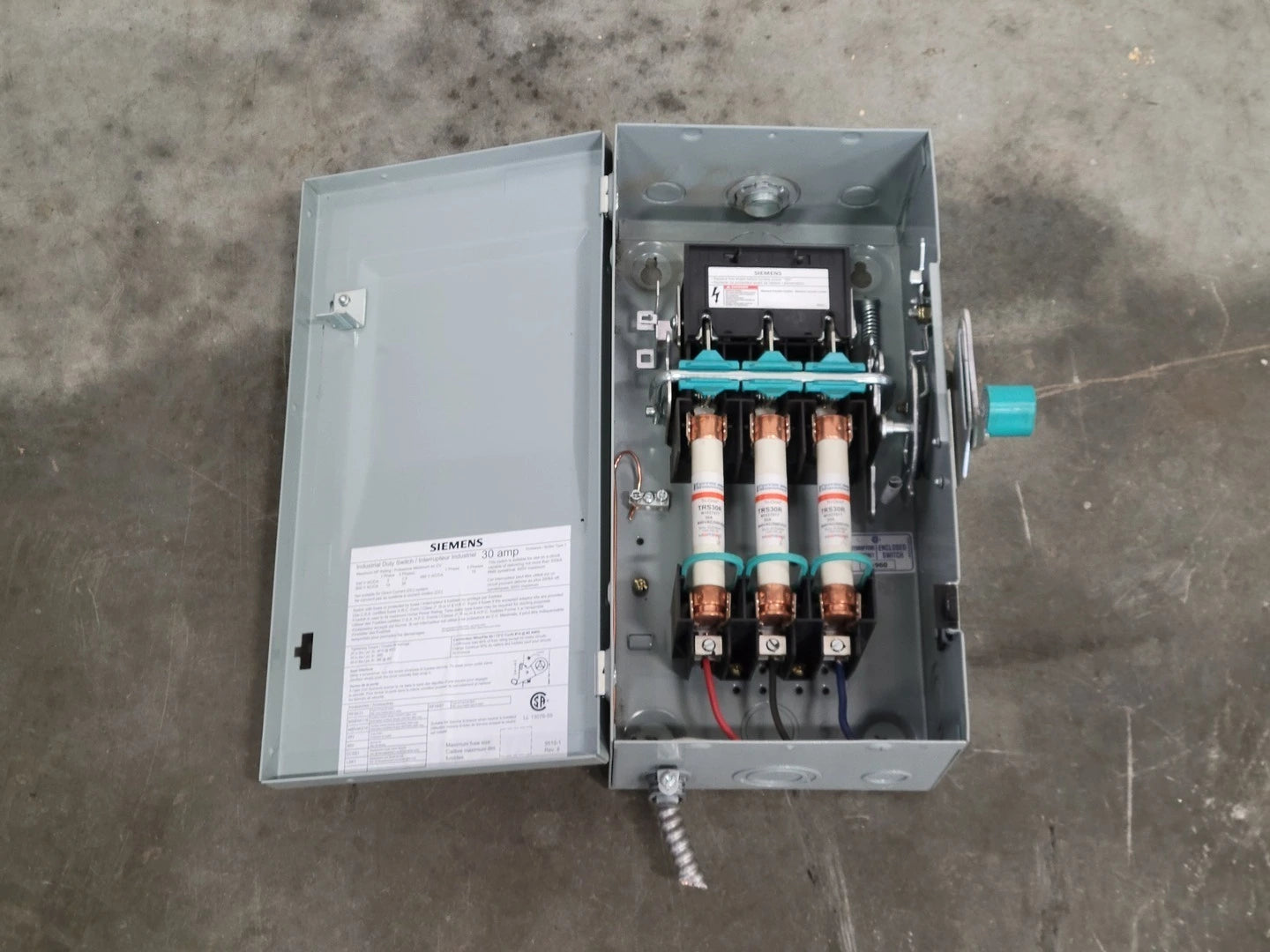 Interruptor de uso industrial, 30 A, 600 V, 3 polos, con fusible cerrado, ID361