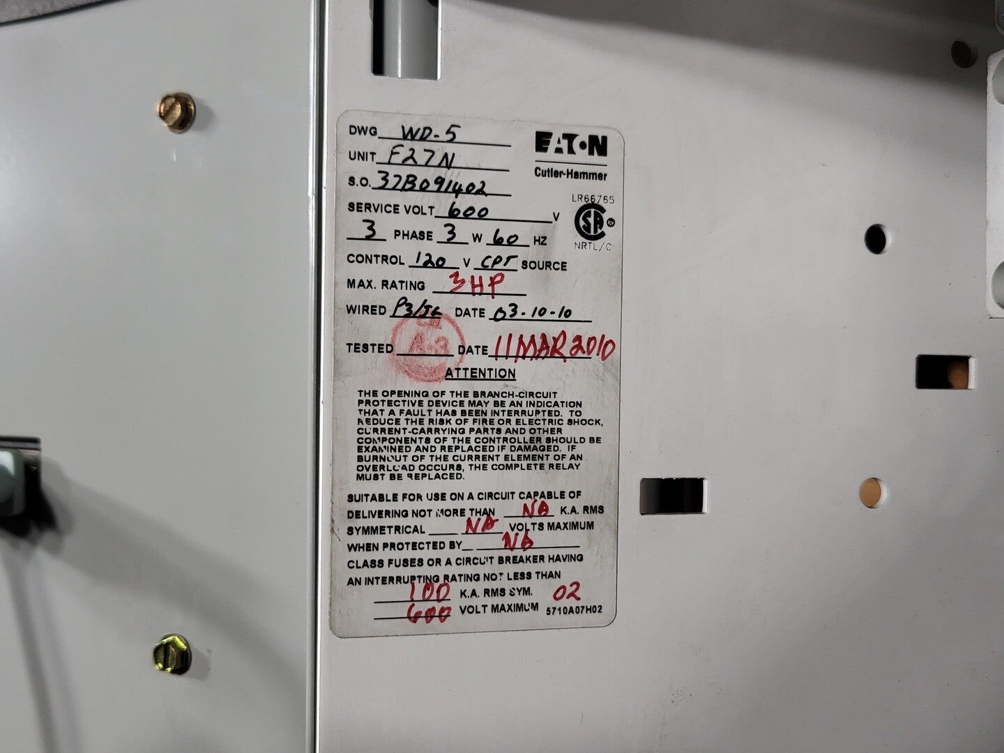 Voltage 600 volts