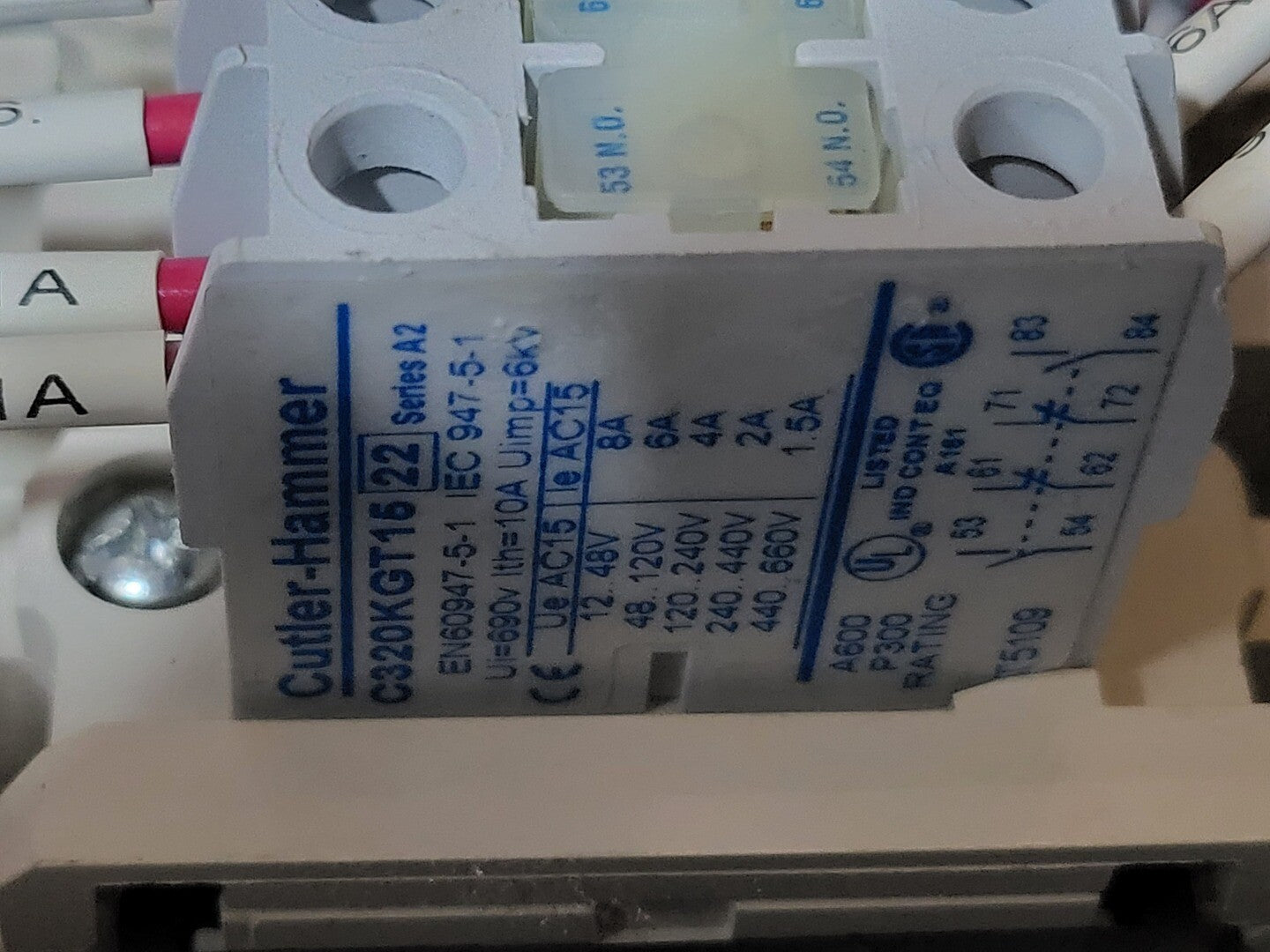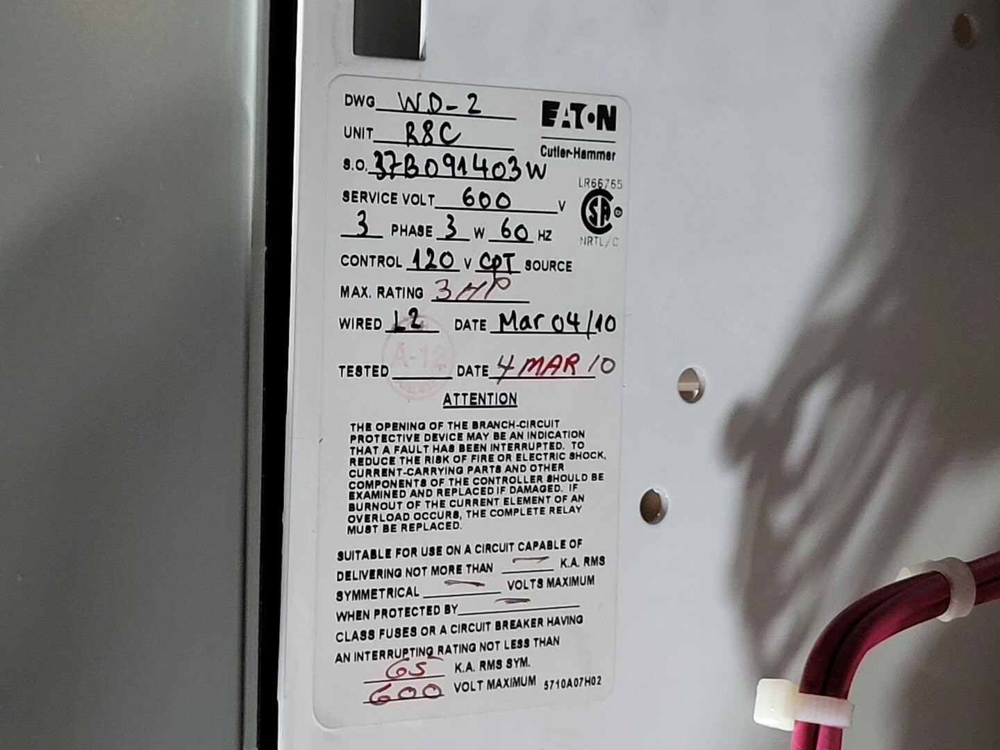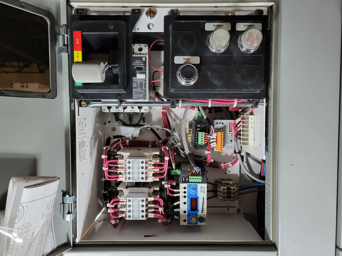 **Fits 2100 MCC Frame Circuit Breaker Maker: Eaton Model: HMCP Voltage: 600V Amps: 7 amps Poles: 3 Ground Fault Relay Maker: Eaton Model: D64RPB30 Overload relay: 24-240 Vac/dc Motor Saver Electronic Overload Relay Maker: Eaton Model: E777-575-LR Voltage: 450-600VAC Phase: 3 Transformer Maker: MCi Model: 5576-14-120-00 VA: 150VA Primary: 600V Secondary: 120V Devicenet Module Maker: Eaton Model: ECIO-120-DN Inputs: 115VAC Contactor Maker: Eaton Model: CN15DN3 Amp: 27 Size: NEMA 1 |