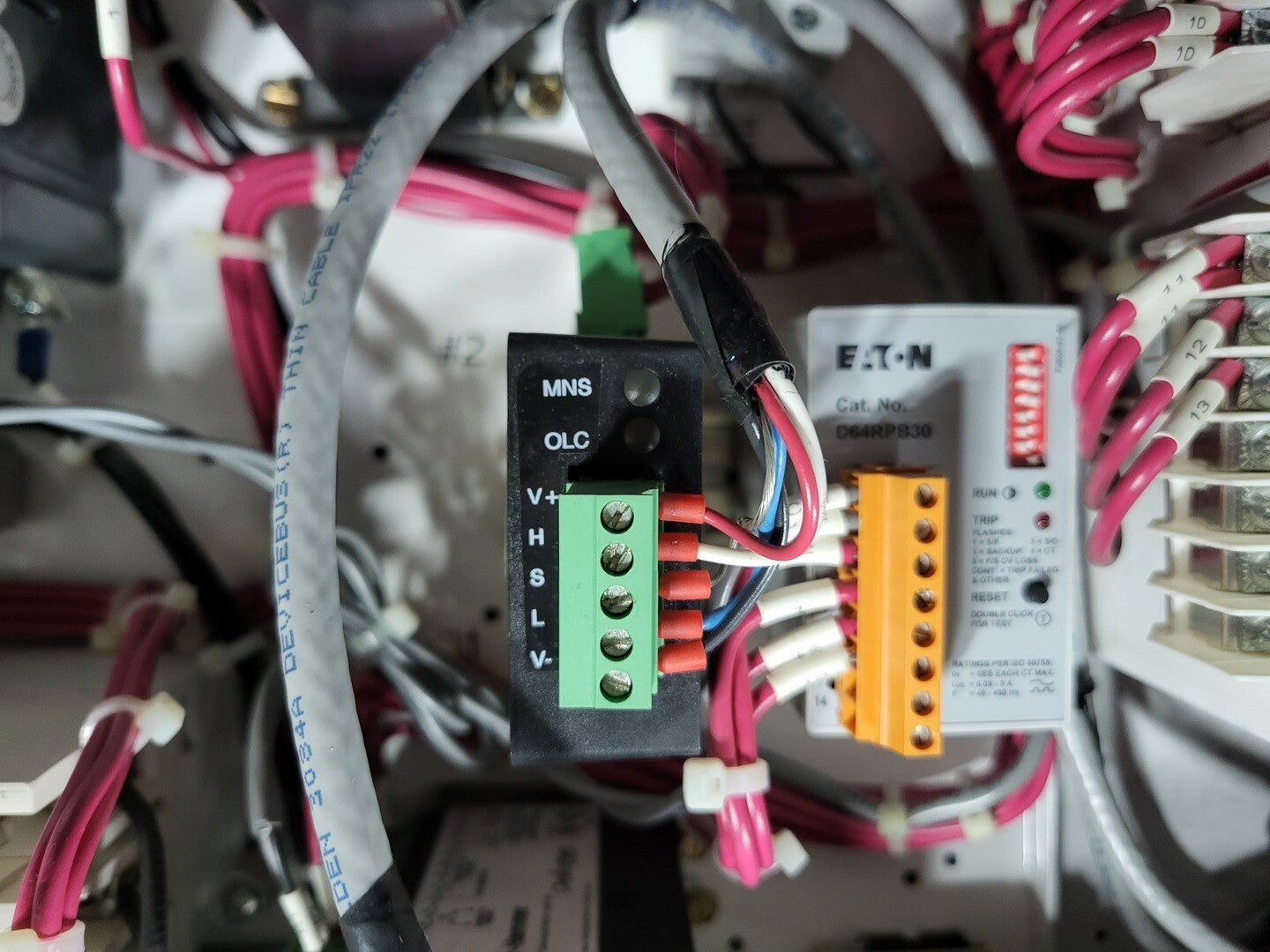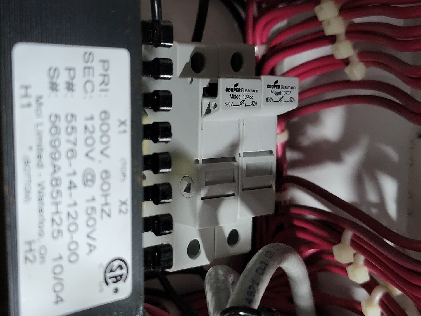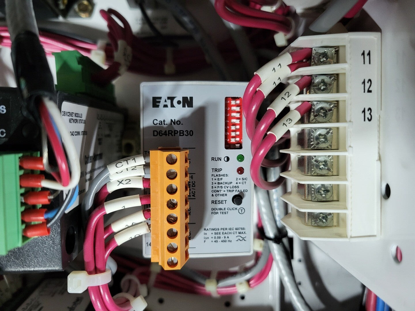 **Fits 2100 MCC Frame Circuit Breaker Maker: Eaton Model: HMCP Voltage: 600V Amps: 7 amps Poles: 3 Ground Fault Relay Maker: Eaton Model: D64RPB30 Overload relay: 24-240 Vac/dc Motor Saver Electronic Overload Relay Maker: Eaton Model: E777-575-LR Voltage: 450-600VAC Phase: 3 Transformer Maker: MCi Model: 5576-14-120-00 VA: 150VA Primary: 600V Secondary: 120V Devicenet Module Maker: Eaton Model: ECIO-120-DN Inputs: 115VAC Contactor Maker: Eaton Model: CN15DN3 Amp: 27 Size: NEMA 1 |