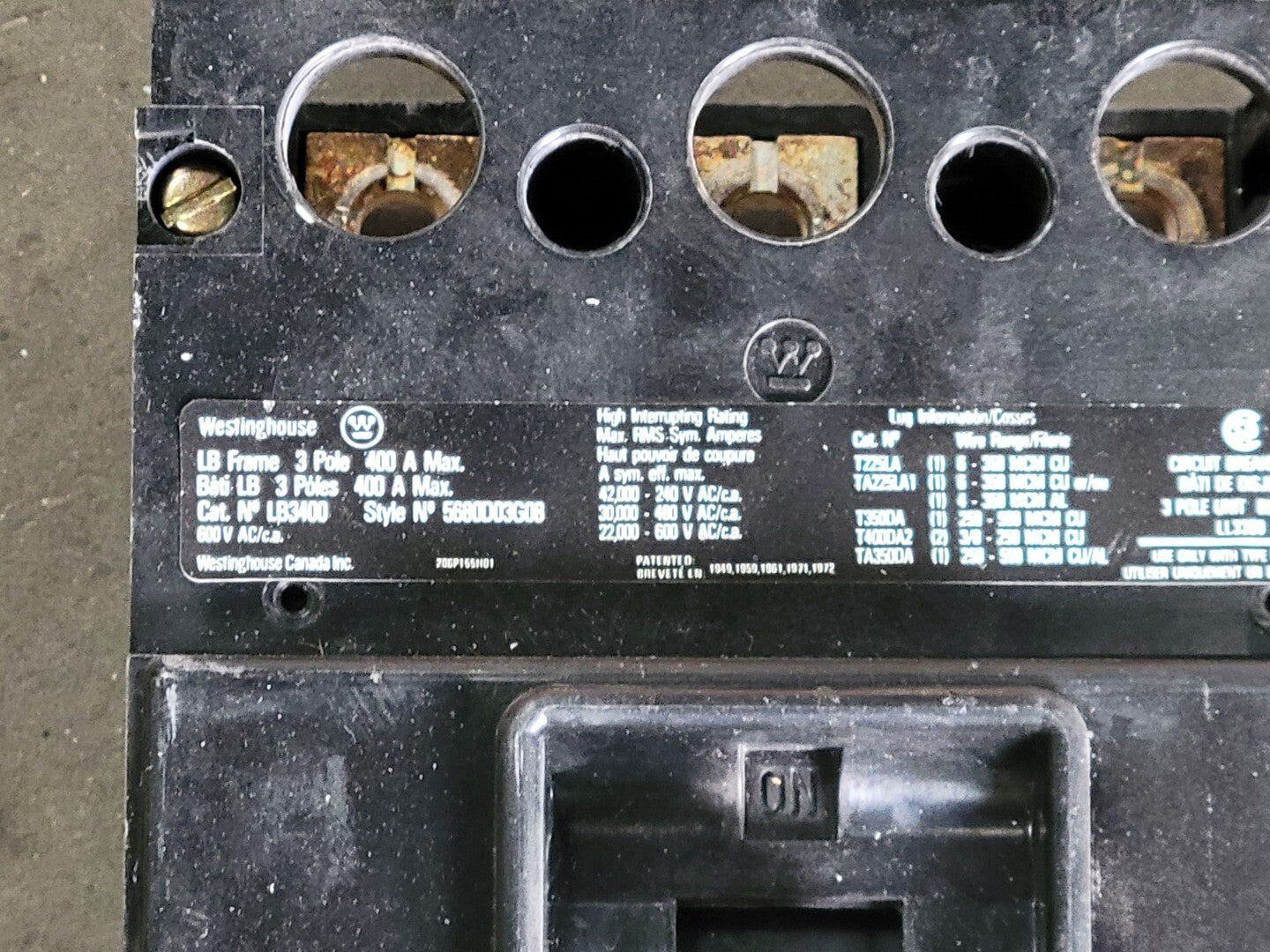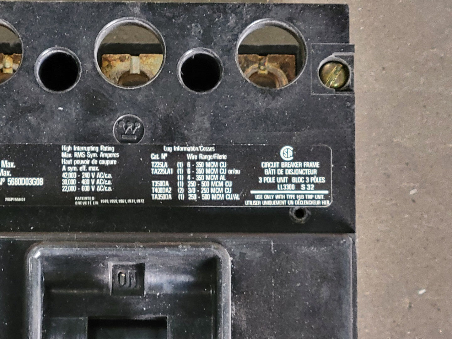 Clasificación de interrupción: 42 kA a 240 V, 30 kA a 480 V, 22 kA a 600 V