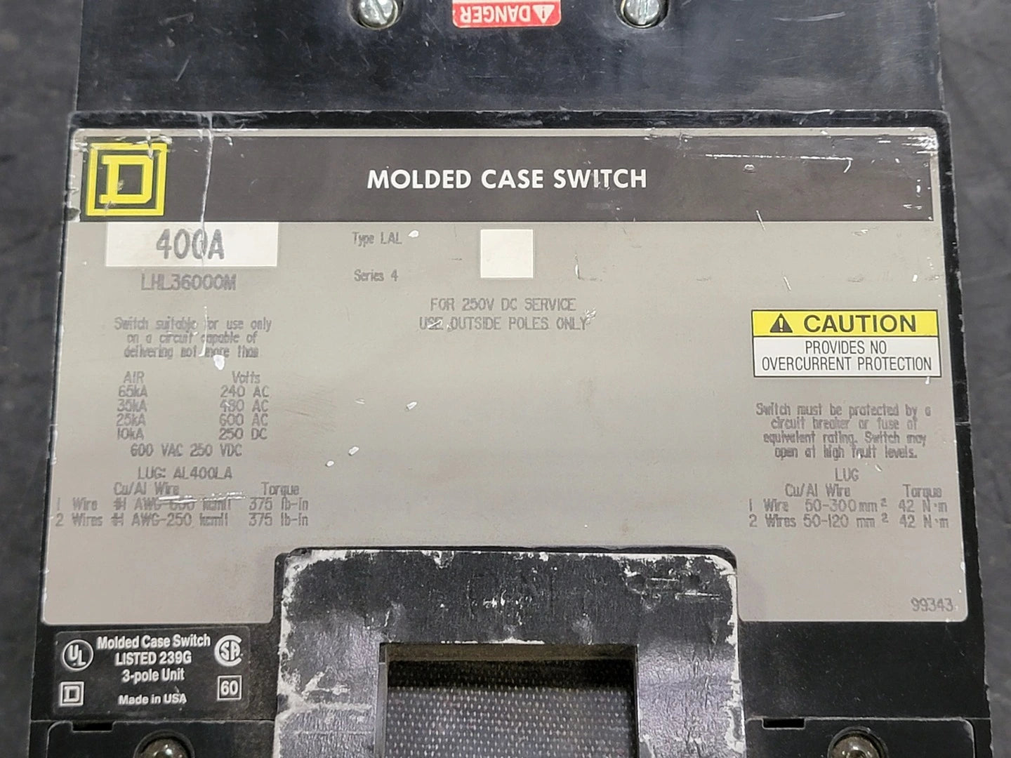 Interruptor de caja moldeada de 3 polos y 400 amperios LHL36000M