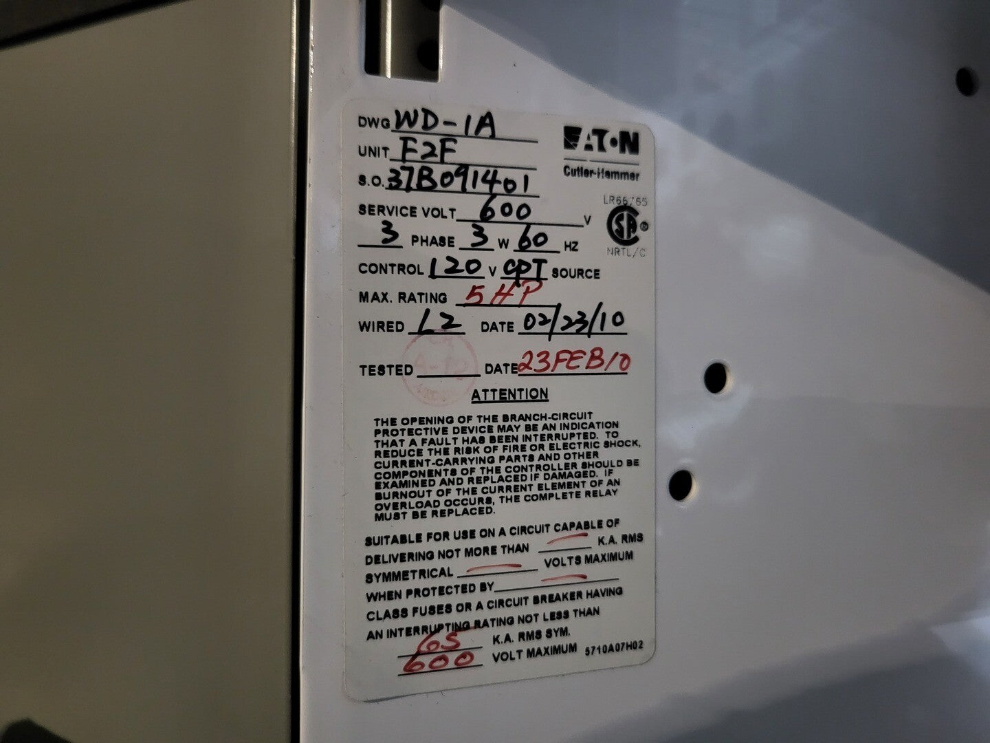 Voltage 600 volts