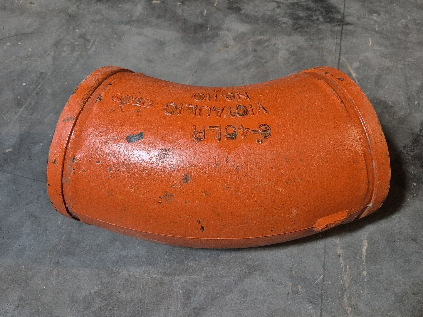 6" Grooved 45° Elbow Fitting, Ptd. Orange, No. 110