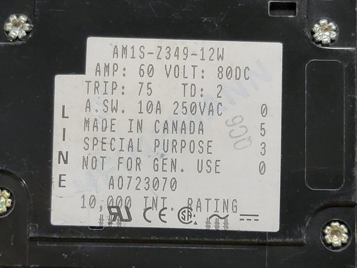 Disyuntor de 1 polo de 60 amperios AM1S-Z349-12W