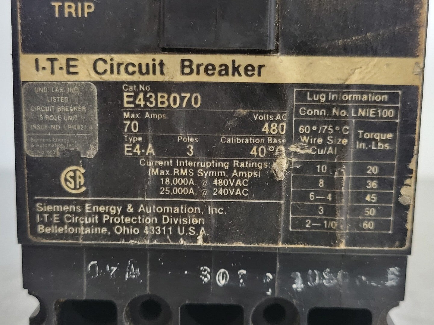 Disyuntor de 3 polos de 70 amperios E43B070