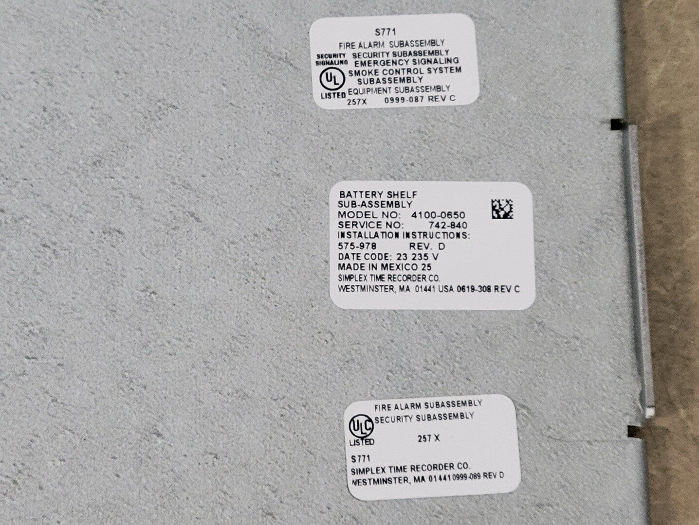 Battery Shelf Sub-Assembly 4100-0650