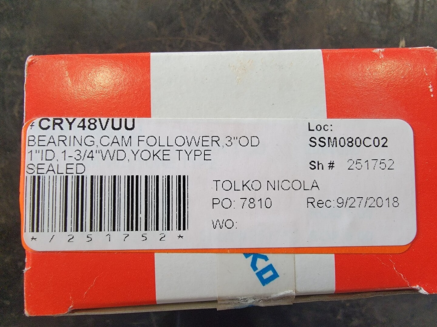 Bearing Cam Follower 76mm ID x 25mm OD x 44mm W, CRY48VUU