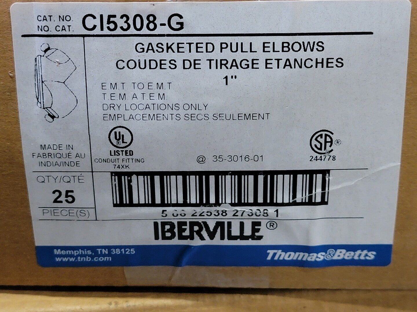 Iberville Codos de tracción con juntas de 1" No. CI5308-G, aleación de zinc