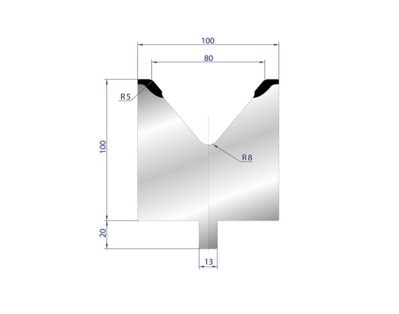 Part No. 3134 @ 100mm 80 Degree Single V Die
