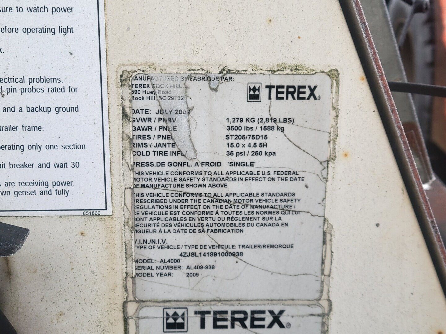 Max Tow Speed: 60 mph/ 96 kmh KVA: Stand BYL: 188/ Prime: 181 Tire Pressure: 35 psi/ 250 kpa Tongue Weight: 147 lbs/ 66.7 kg Vehicle Type: 4ZJSL141891000938 Gross Vehicle Weight Rating: 1279 kg (2819 lbs) Gross Axle Weight Rating: 1588 kg (3550 lbs) Tire Size: ST205/ 75D15 Rim Size: 15.0 x 4.5 5H |