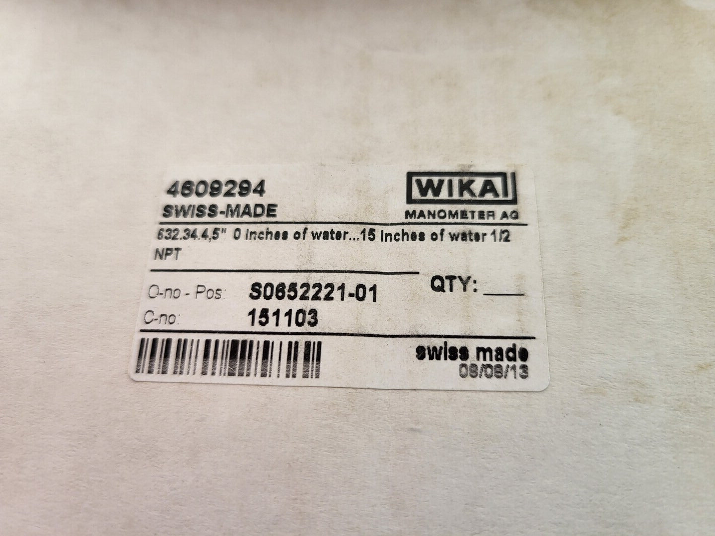 Manómetro 15 in H2O Tipo 632.34 4.5" 1/2" NPT