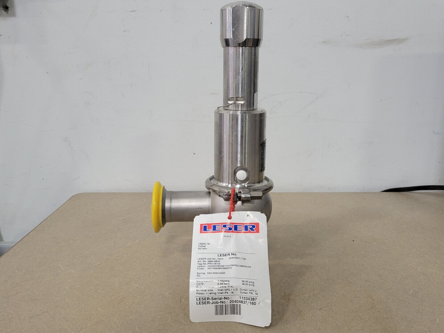 Set Pressure: 2.48 barg, 36 psig