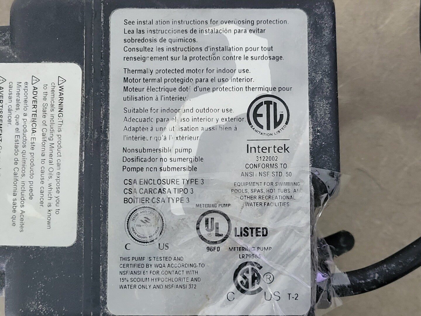 Max. Pressure: 100psi