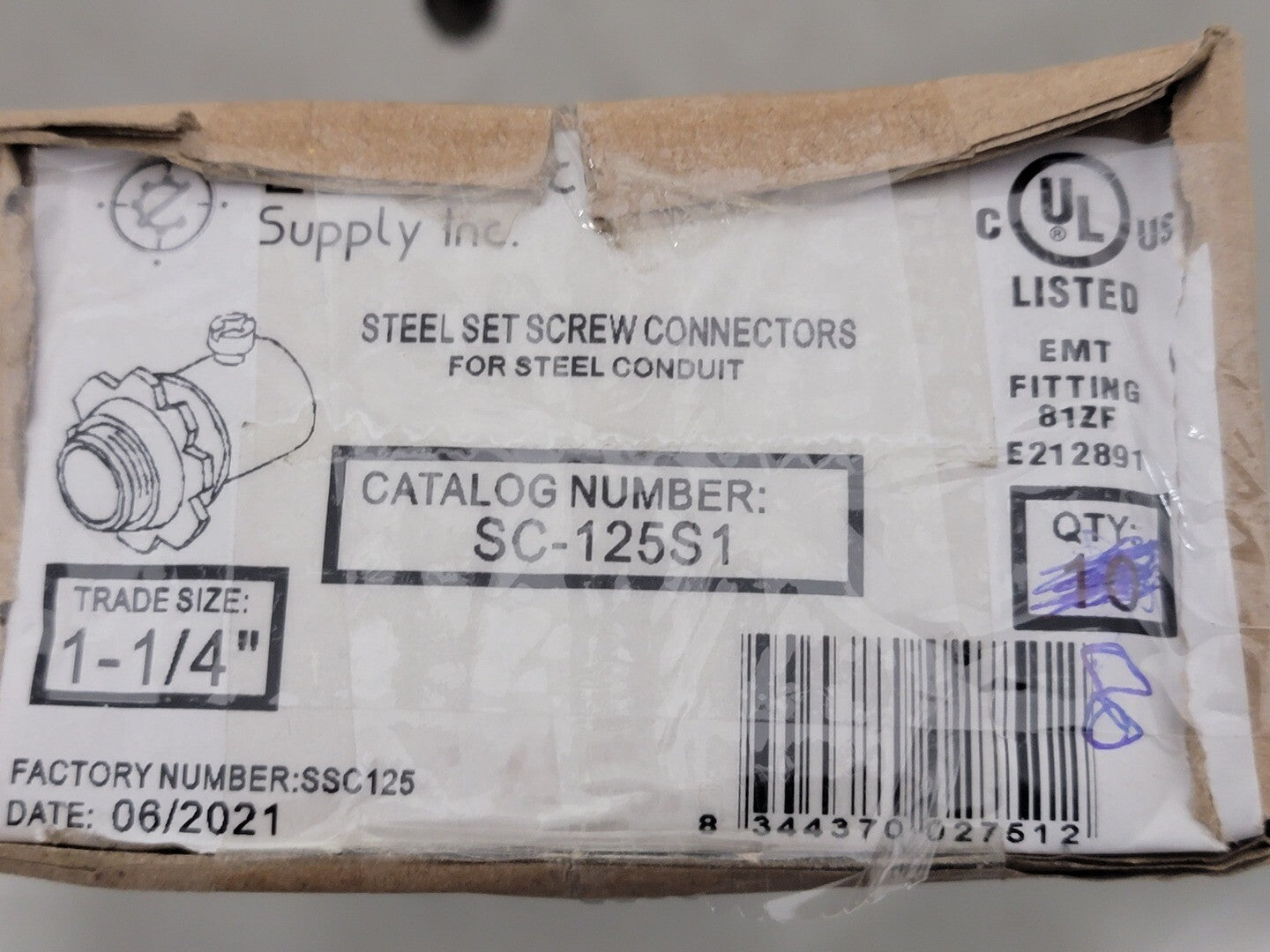 1-1/4" Steel Set Screw Connector SC-125S1 (Box of 8 pcs)