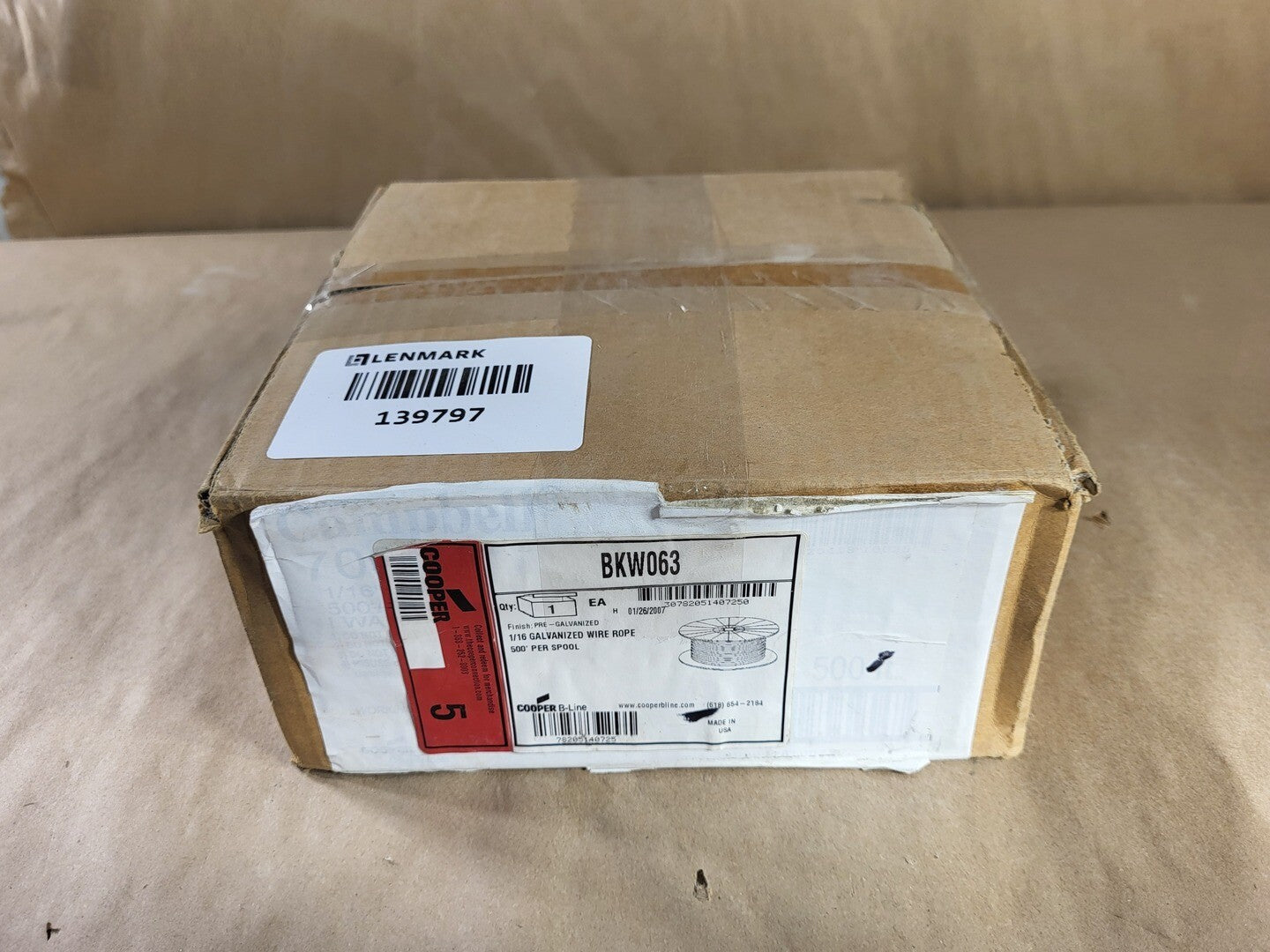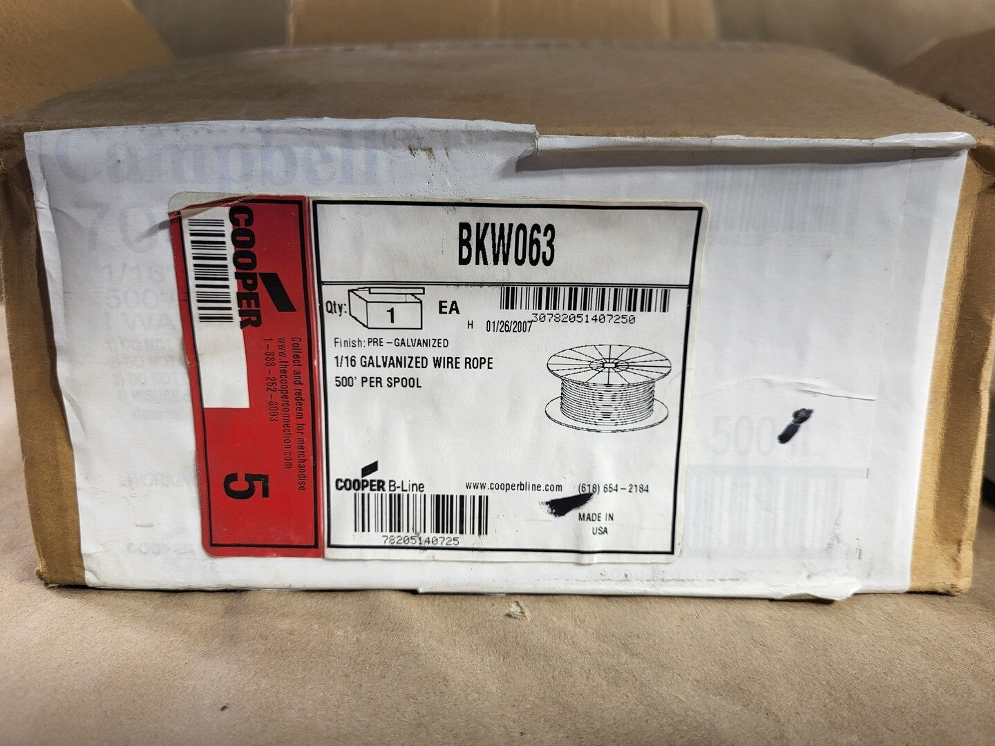 1/16", 500' per Spool Galvanized Wire Rope BKW063