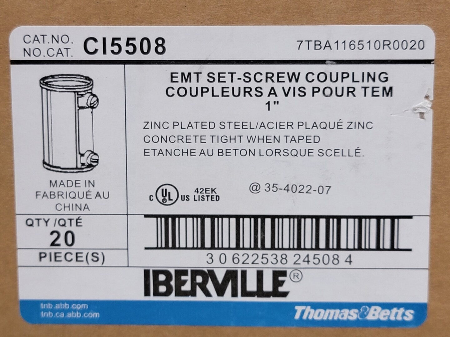1" EMT Set-Screw Coupling CI5508 (Box of 20)