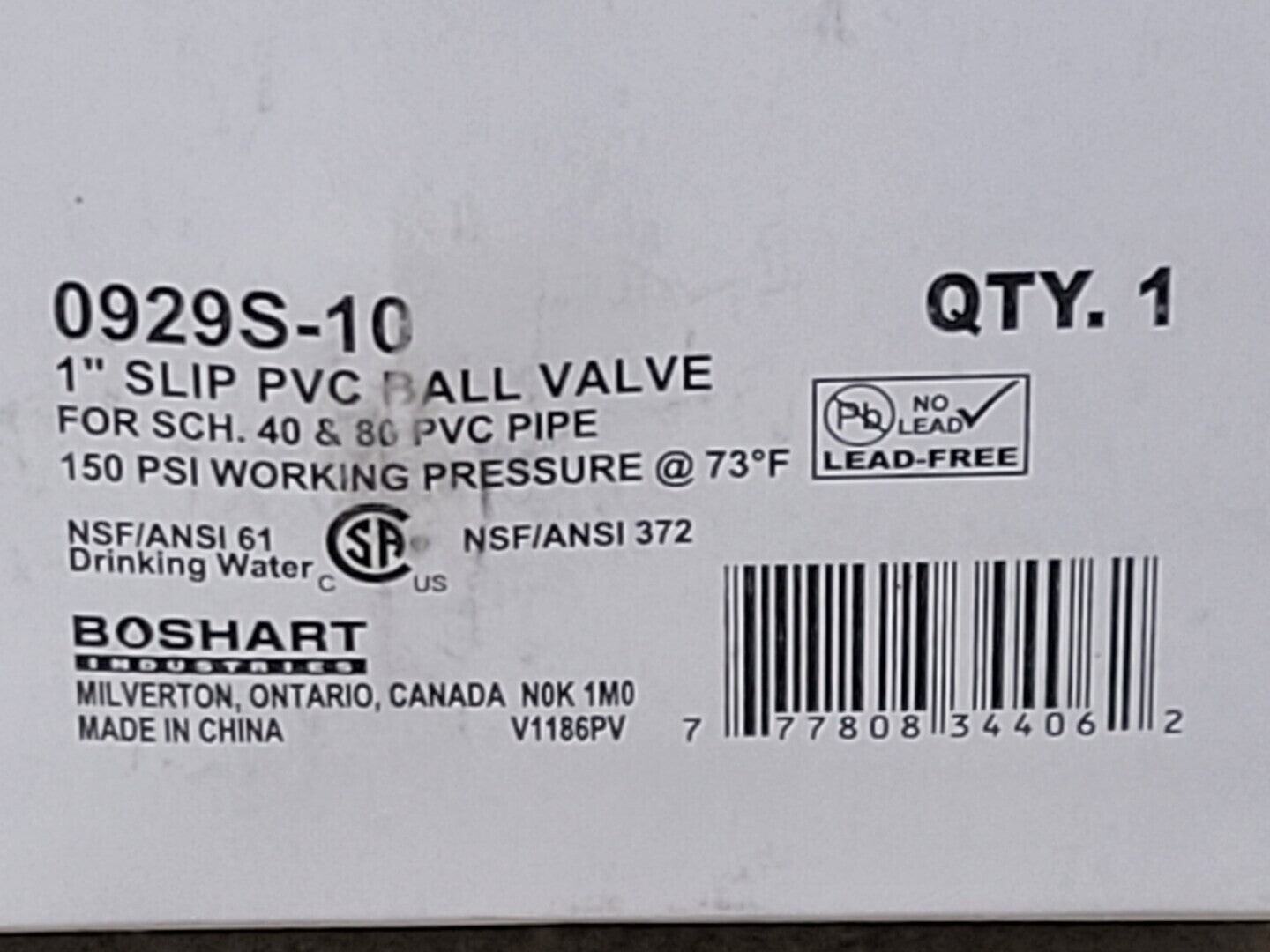 1" Slip PVC Ball Valve 0929S-10