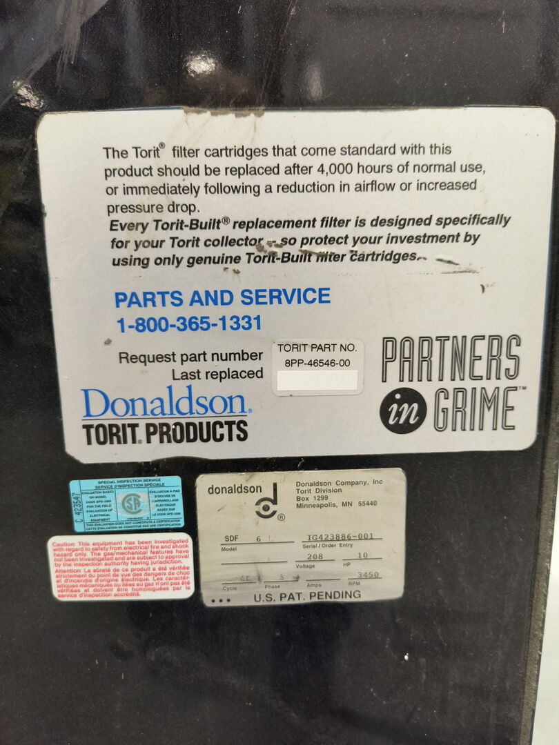10 hp 1600 CFM Cartridge Dust Collector SDF-6