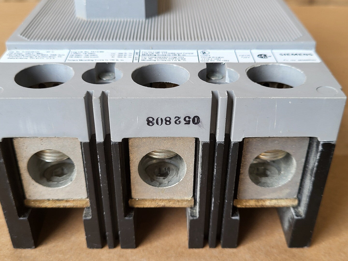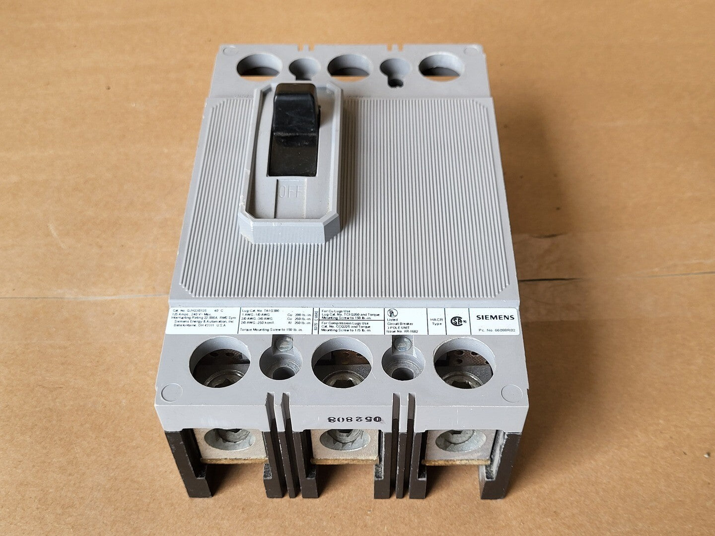 The Siemens QJH23B125 is a 3-pole molded case circuit breaker designed for reliable protection in electrical distribution systems. It has a rated current of 125 A and supports voltages up to 240 VAC. The breaker features a thermal-magnetic trip unit with long-time and instantaneous protection. It offers an interrupting capacity of 22 kA at 240 VAC, suitable for industrial and commercial applications. The breaker is mounted using a bolt-on connection and is certified to UL 489 and CSA C22.2 standards.