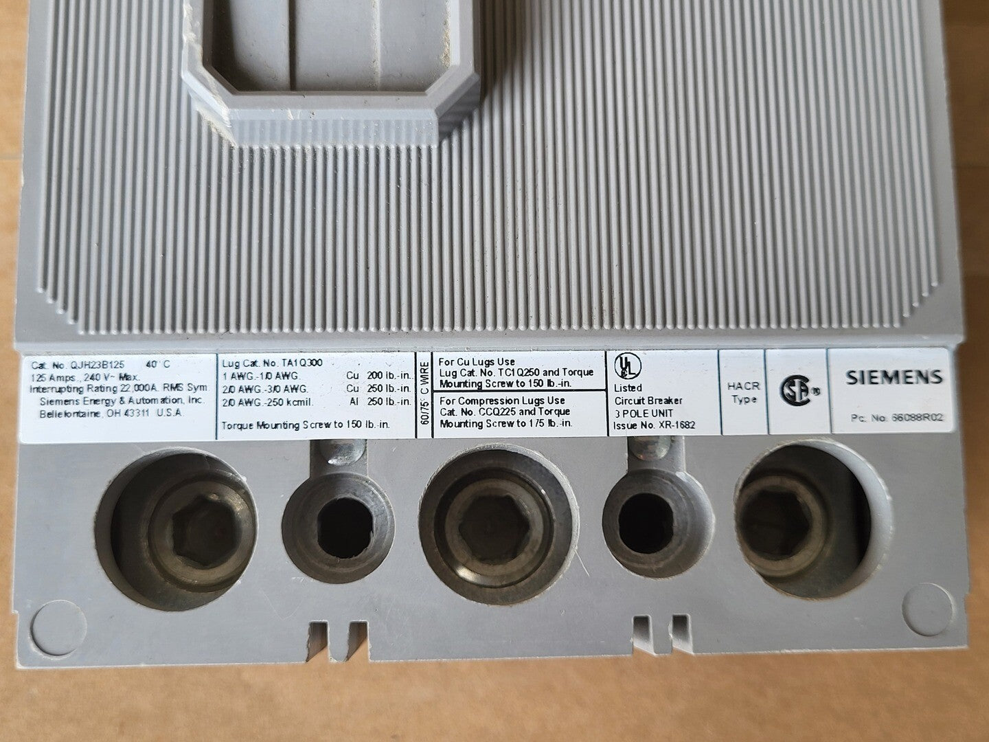 125 Amp, 3 Pole, 240 Volts Circuit Breaker QJH23B125
