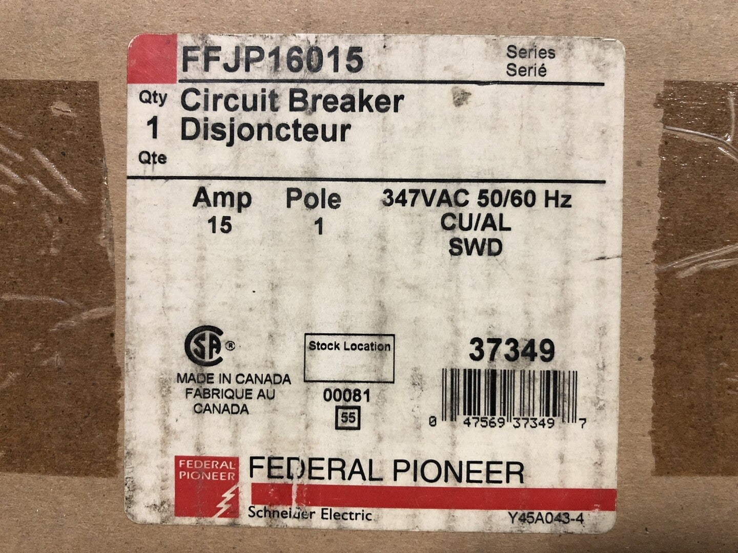 15 Amp, 1 Pole, 120 volts Circuit Breaker FFJP16015