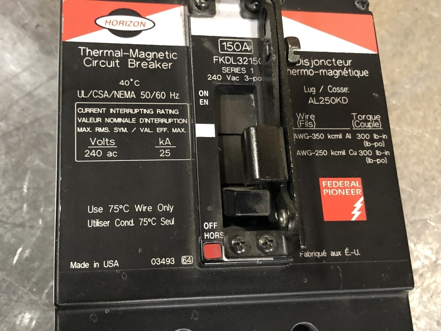 Interrupting Capacity: 25kA at 240V