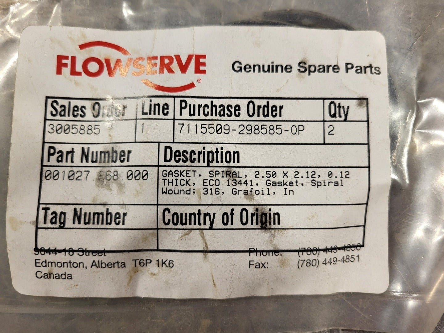 2.5" x 2.12" x 0.12" Spiral Wound Gasket ECO 13441 316 Grafoil 001027.868.000