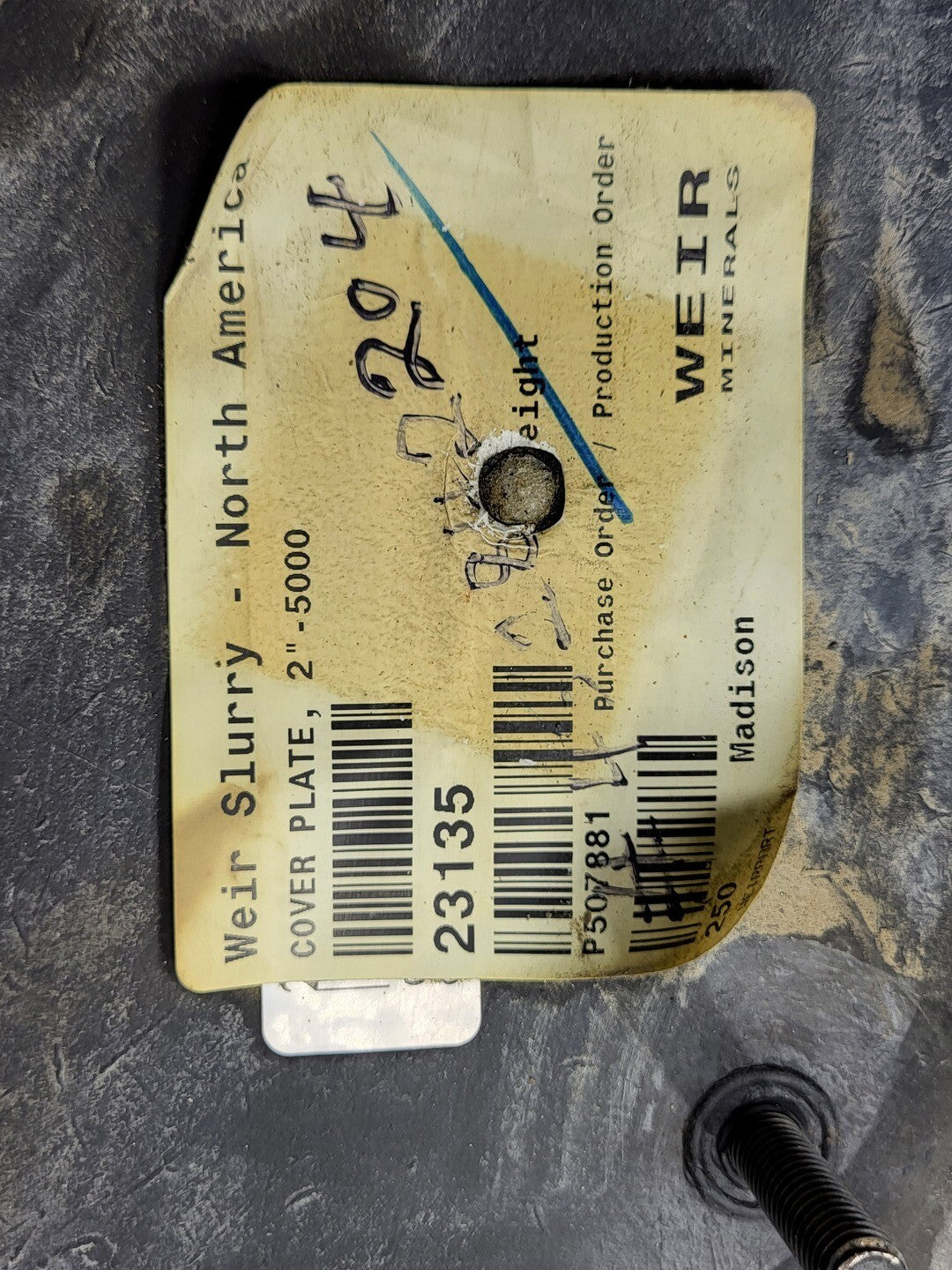 2" 5000 Slurry Pump Cover Plate, 23135