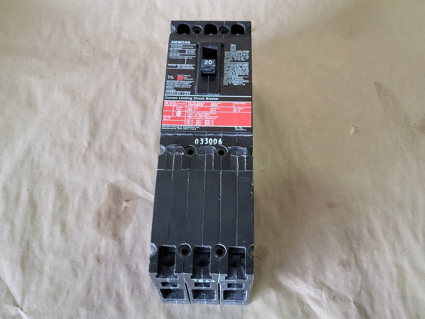 20 Amp 3 Pole 600 Volts Circuit Breaker CED63B020