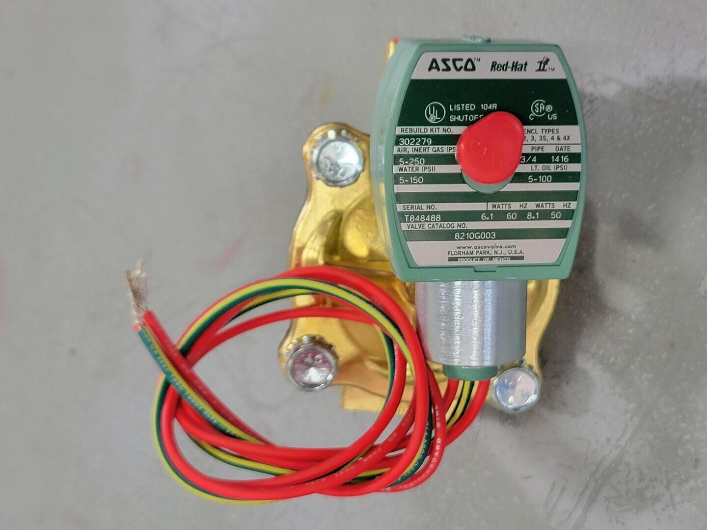 Body Material: Brass Input Supply Rating: 24 VDC Media Handled: Air-Inert Gas, Light Oil, Water Port Connection: 3/4" Female Threaded x 3/4" Female Threaded Pressure Rating: 5-250 PSI (Air), 5-150 PSI (Water), 5-100 PSI (Light Oil) Type: 2-Way/2-Position, Diaphragm, Pilot Operated Valve Position: Normally Closed Actuation Type: Solenoid Wattage Rating: 8.1 W @ 50 Hz, 6.1 W @ 60 Hz Enclosure Types: 2,3,3s,4 & 4x Coil Voltage: 120V |