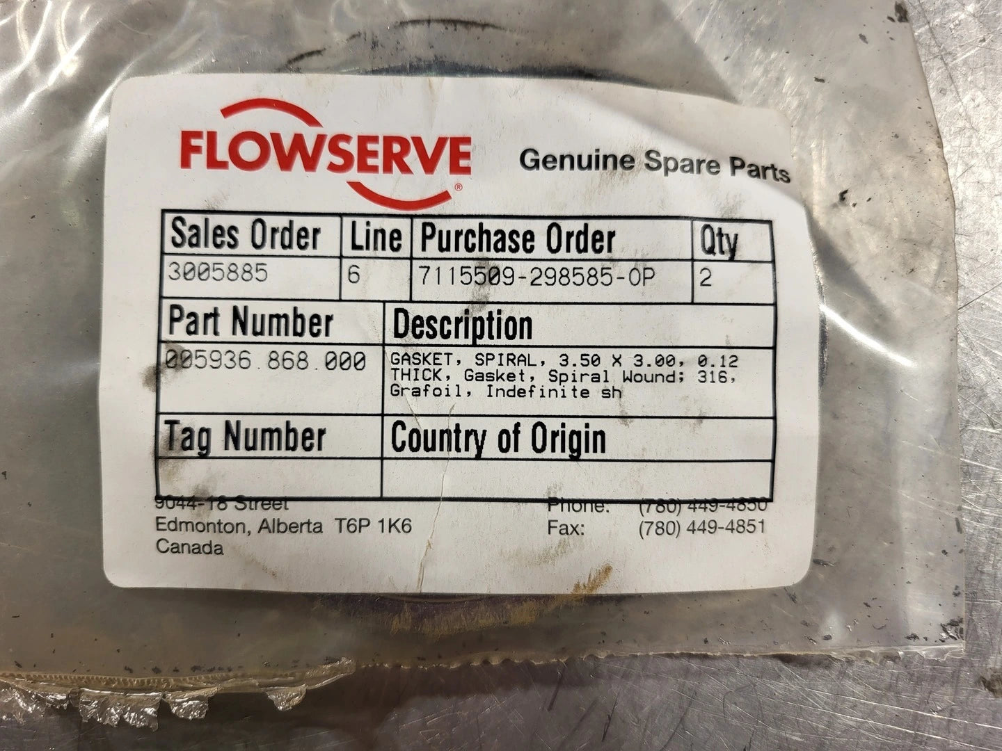 3.5" x 3.0" x 0.12" Spiral Wound Gasket 316 Grafoil P/N 005936.868.000