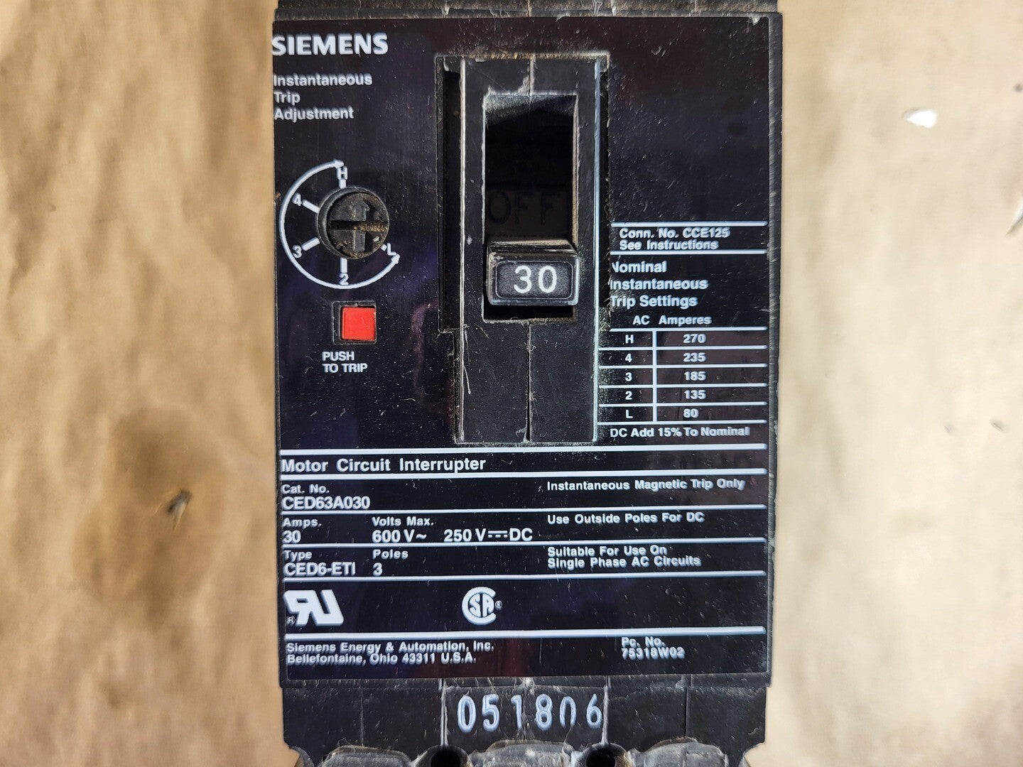 30 Amp 3 Pole Circuit Breaker CED63A030