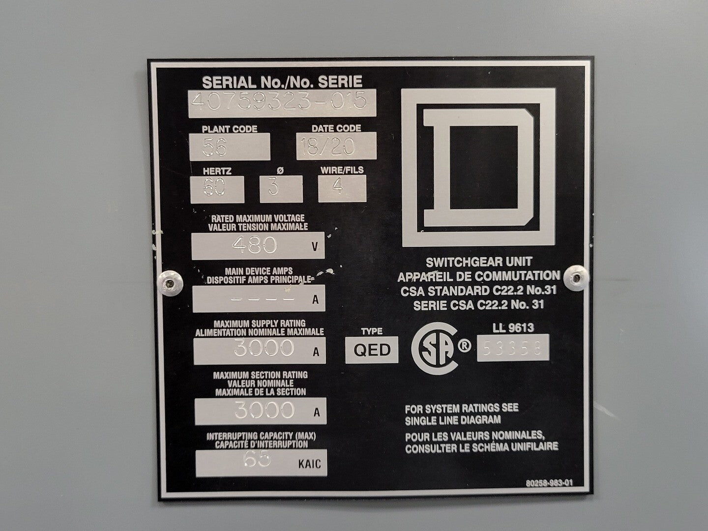 Interrupting capacity: 65 KAIC