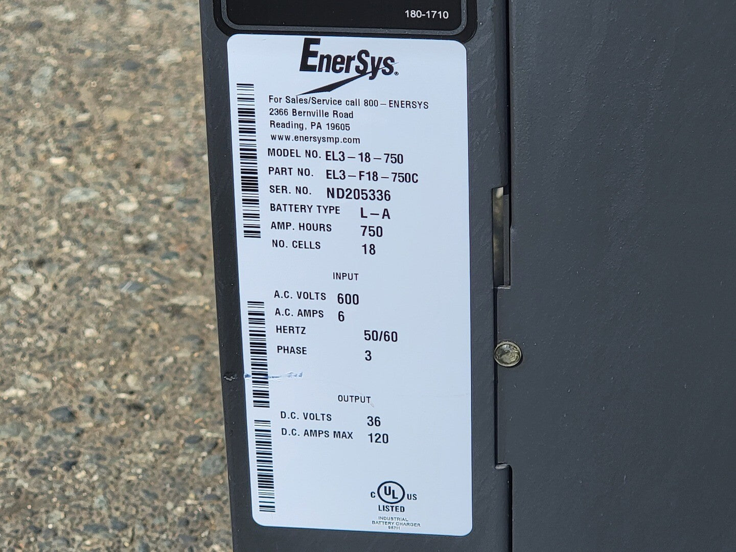 36 Volt, 120 Amp, 750 AH Industrial Battery Charger EL3-18-750C