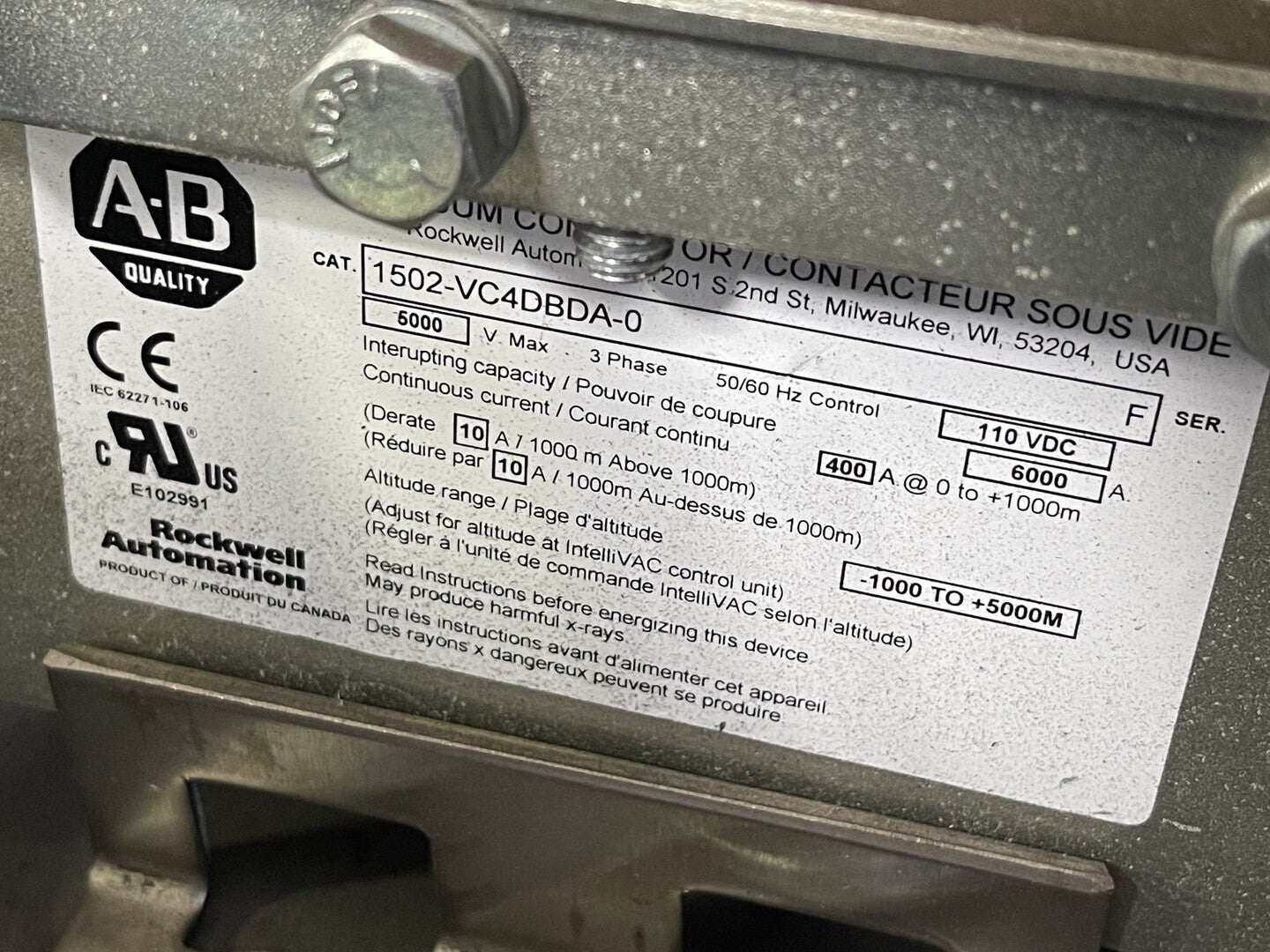 400 Amp Vacuum Contactor 1502-VC4DBDA-0
