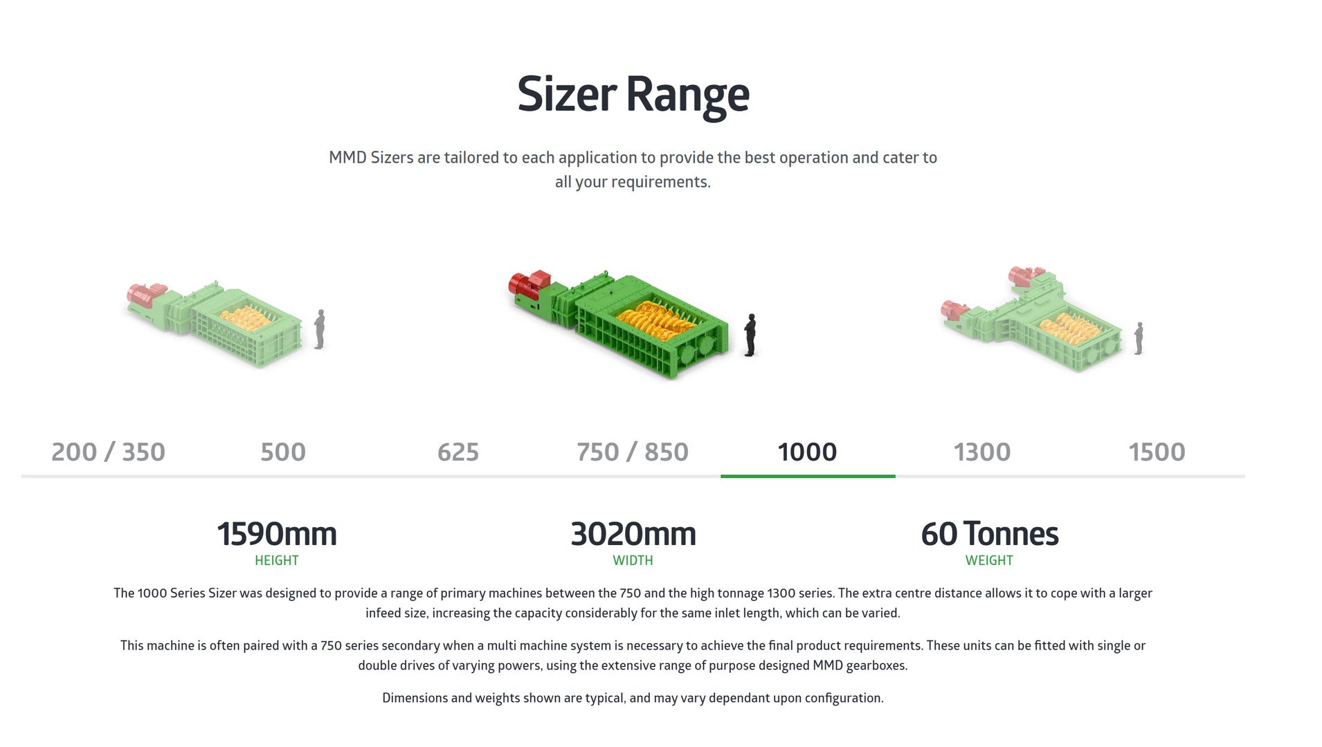 MMD 1000 Mineral Sizer 60 ton, 1590mm x 3020mm
