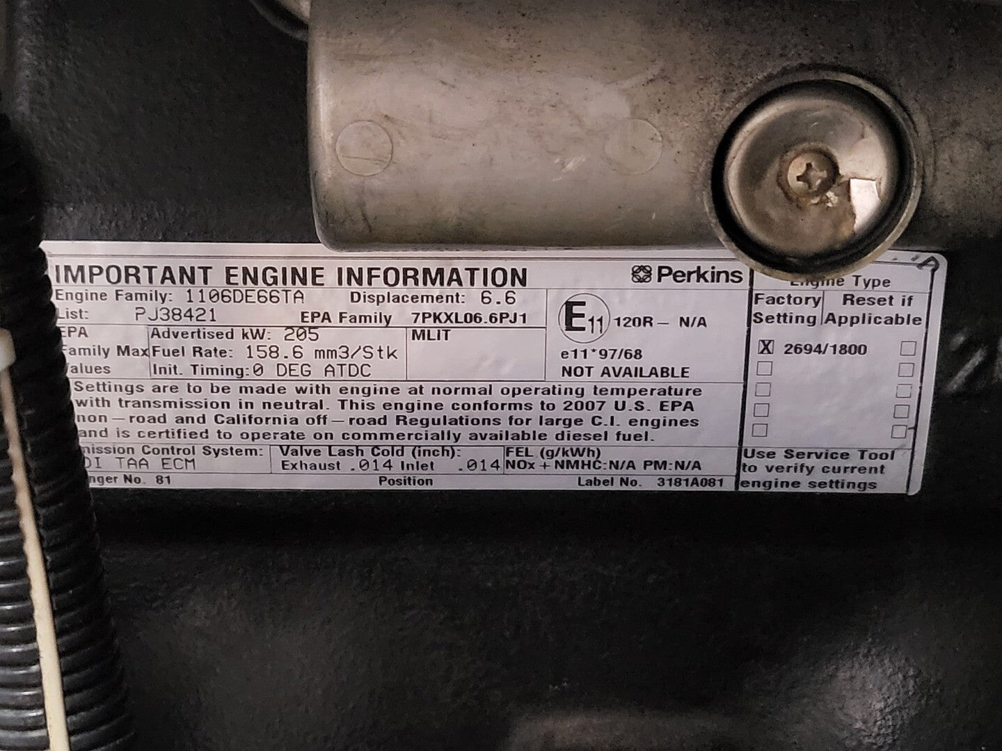 Engine Specs Model: Perkins Diesel Engine 1106D-E66TAG4