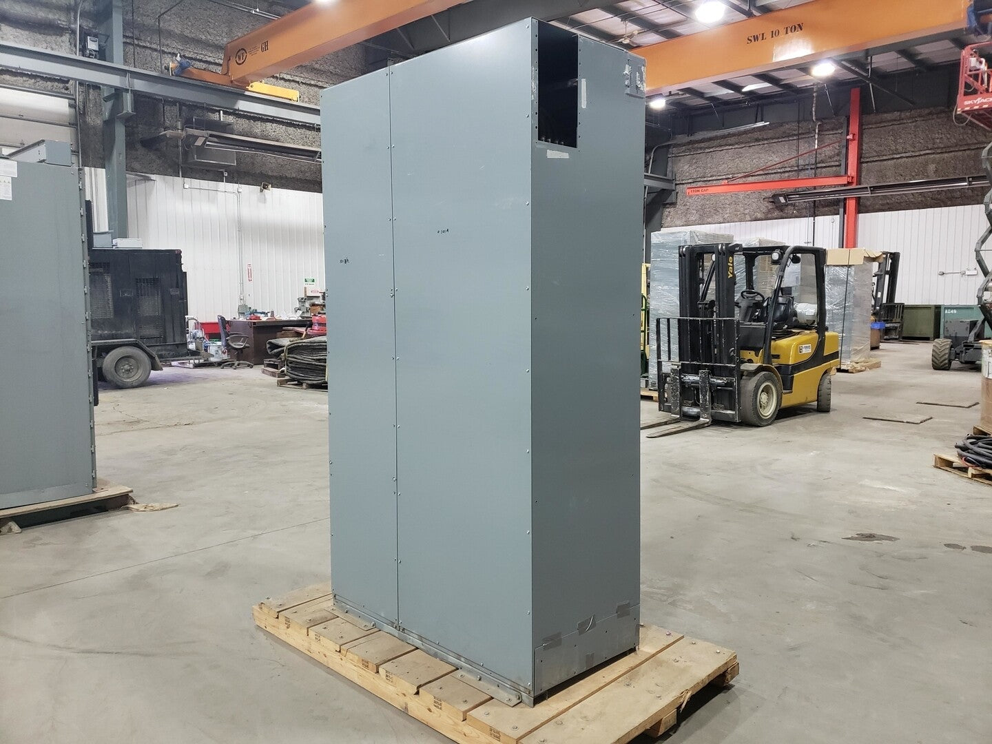 Series: A Enclosure Type: TYPE 1 Maximum RMS Short Circuit Current: 6500 A Power Ratings ( 3-Phase AC Input): Volts: 575 V KVA: 592 kVA Amps: 595 A Frequency: 60 Hz Power Ratings ( 3-phase AC Output): Volts: 575 V KVA: 598 kVA Amps: 600 A Frequency: 0-400 Hz |