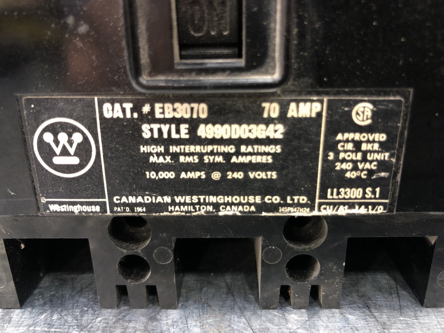 70 Amp, 3 Pole, 240 Volts Circuit Breaker EB3070