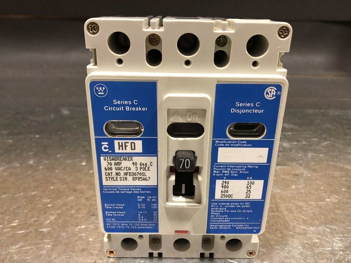 70 Amp, 3 Pole, 600 volts Circuit Breaker HFD3070SL