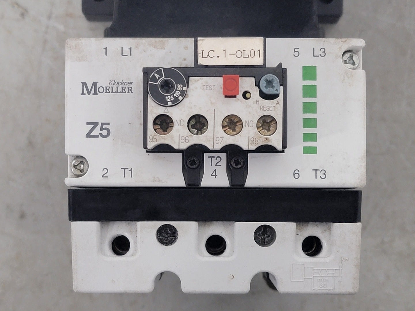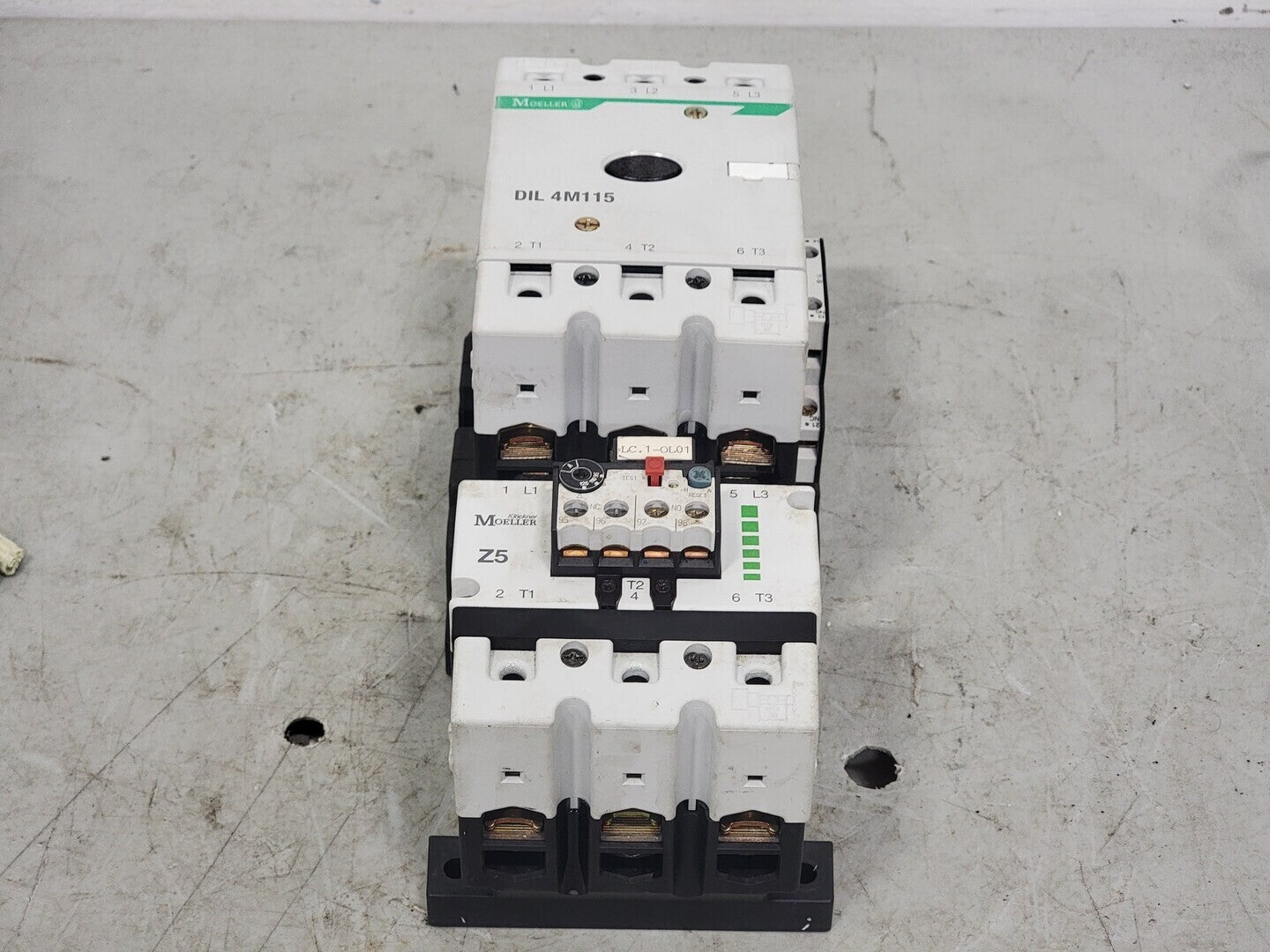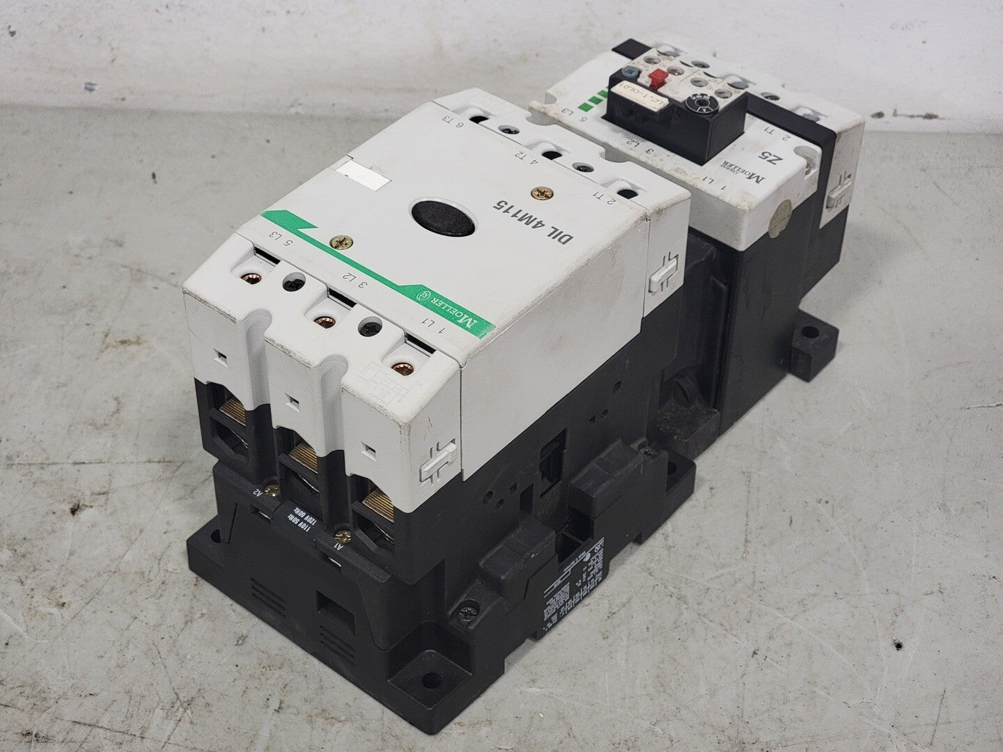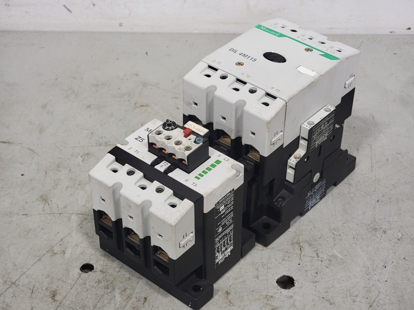 Poles: 3 Phase: 3 Mounting: Din Rail, Panel Terminal: Screw Coil Voltage: 110/120 VAC, 50/60 Hz 3-Phase hp Ratings: 200 VAC @ 40 hp, 230 VAC @ 50 hp, 460 VAC @ 100 hp Auxiliary Contact:- Model: DILM 820-XHI Contact Configuration: 1 NO, 1 NC Amps: 10 A VAC: 600 V VDC: 250 V Overload Relay:- Model: Z5-125 Amp Range: 95-125 A Volts: 600 VAC |