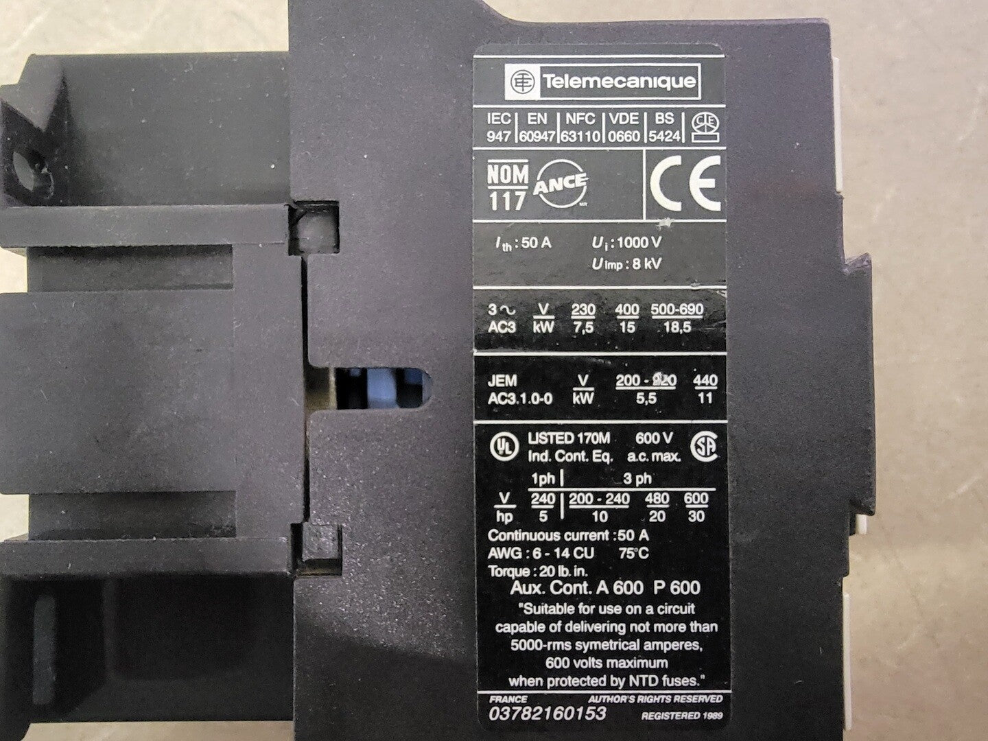 Contactor LC1D3210, 50A, 600V, 30HP