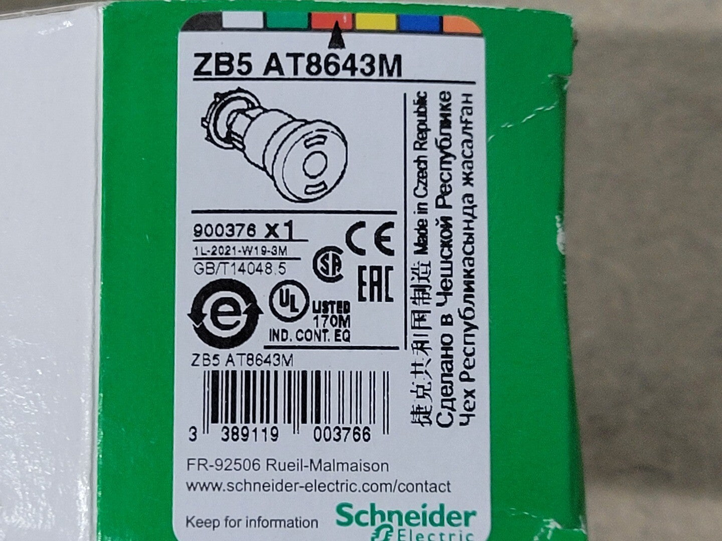 Emergency Stop Push Button ZB5 AT8643M, 22mm Cutout