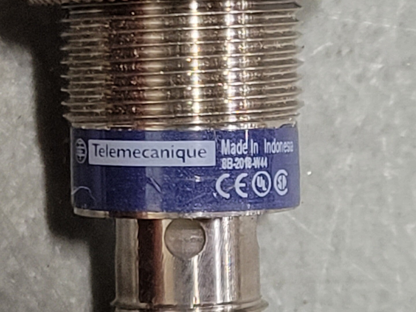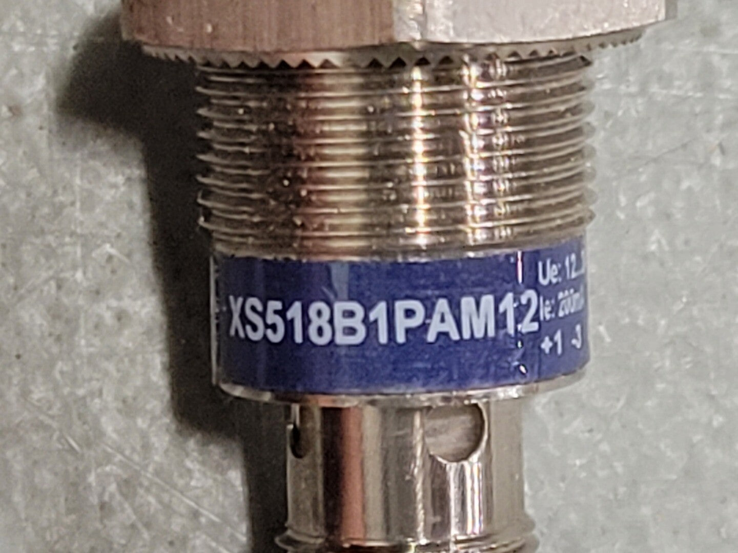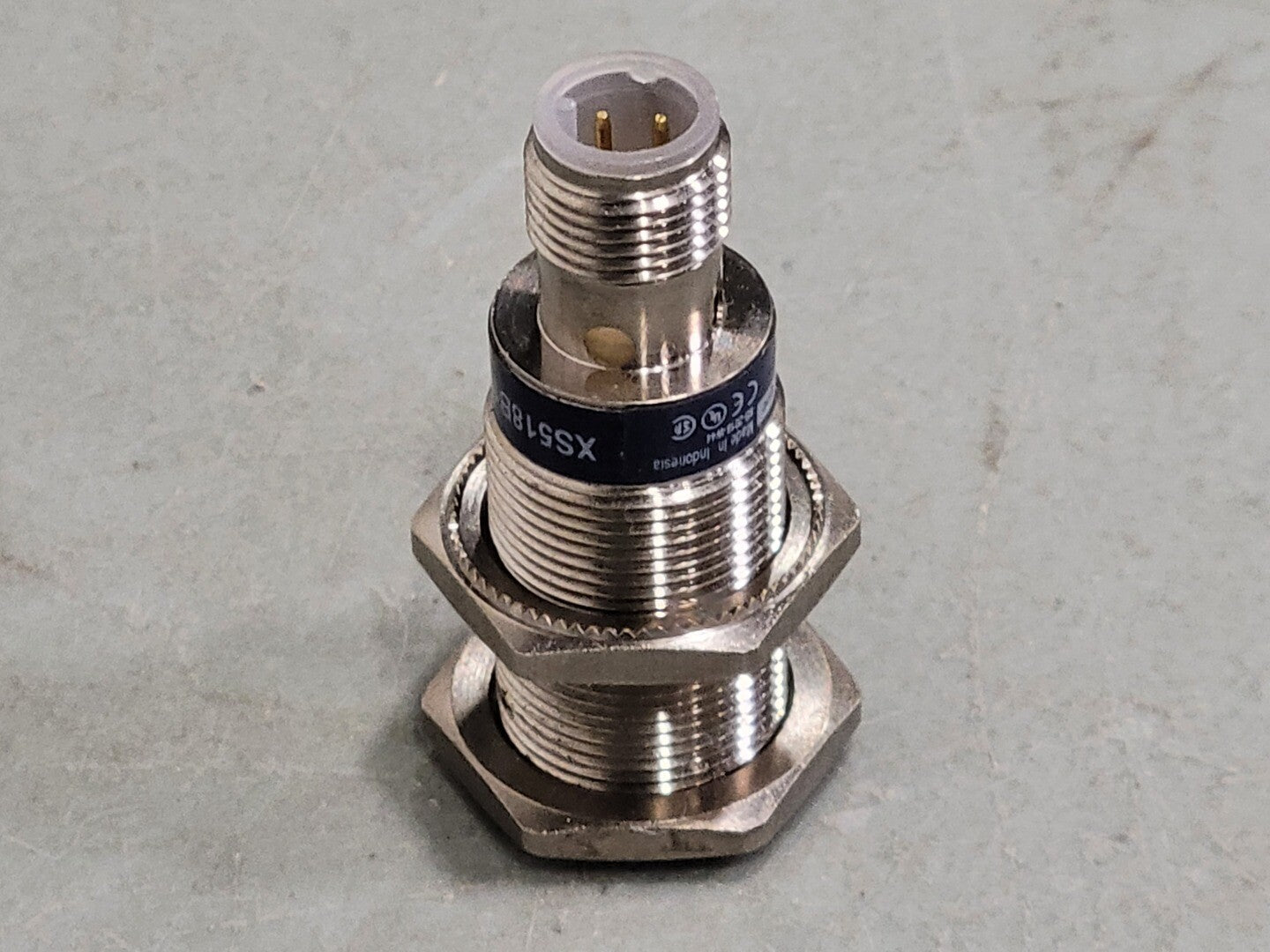 Range of Product: Telemecanique Inductive proximity sensors XS Series name: General purpose Sensor Type: Inductive proximity sensor Sensor name: XS5 Sensor design: Cylindrical M18 Size: 50 mm Body type: Fixed Detector flush mounting acceptance: Flush mountable Material: Metal Type of output signal: Discrete Wiring Technique: 3-wire [Sn] nominal sensing distance: 0.20 in (5 mm) Discrete output function: 1 NO Output circuit type: DC Discrete output type: PNP Electrical connection: Male connector M12, 4 pins [Us] rated supply voltage: 12...24 V DC reverse polarity protection Switching capacity in mA: <= 200 mA DC overload and short-circuit protection |