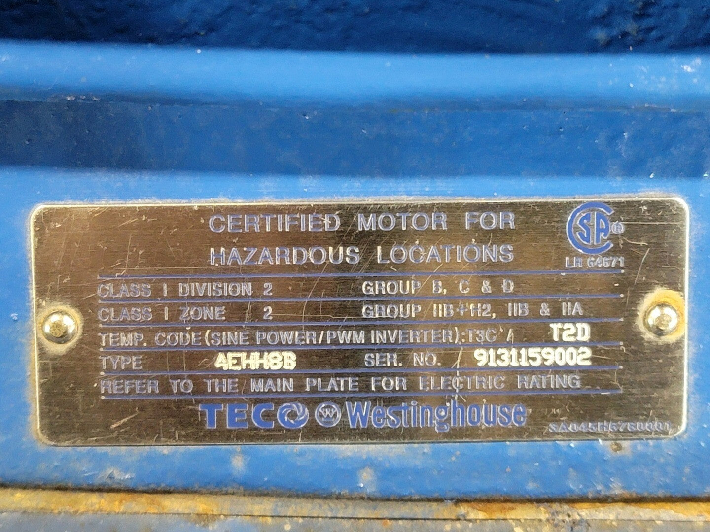 The TECO APH15025-841 is a 150 HP, 3600 RPM, 575V AC electric motor designed for severe-duty industrial applications, adhering to the NEMA Premium efficiency standard and IEEE 841 requirements.