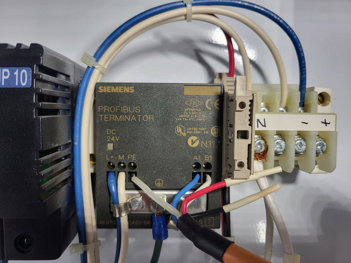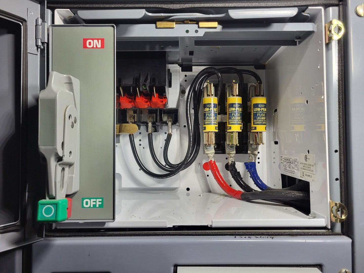 Disconnect 1 x 100 amps, 600 volts, 3 phase disconnect Motor Starter NEMA Size 4 Contactor Square D 8536SFO1B76S Rated up to 100 HP @ 460/575V Motor Protection Square D Motor Logic Plus 9065 SP46 60-135 A protection relay Control Transformer Square D 9070KL300D5 0.3 kVA control power transformer PLC / Communications Module Schneider Electric TSX Momentum 170DNT11000 Profibus communication adapter |